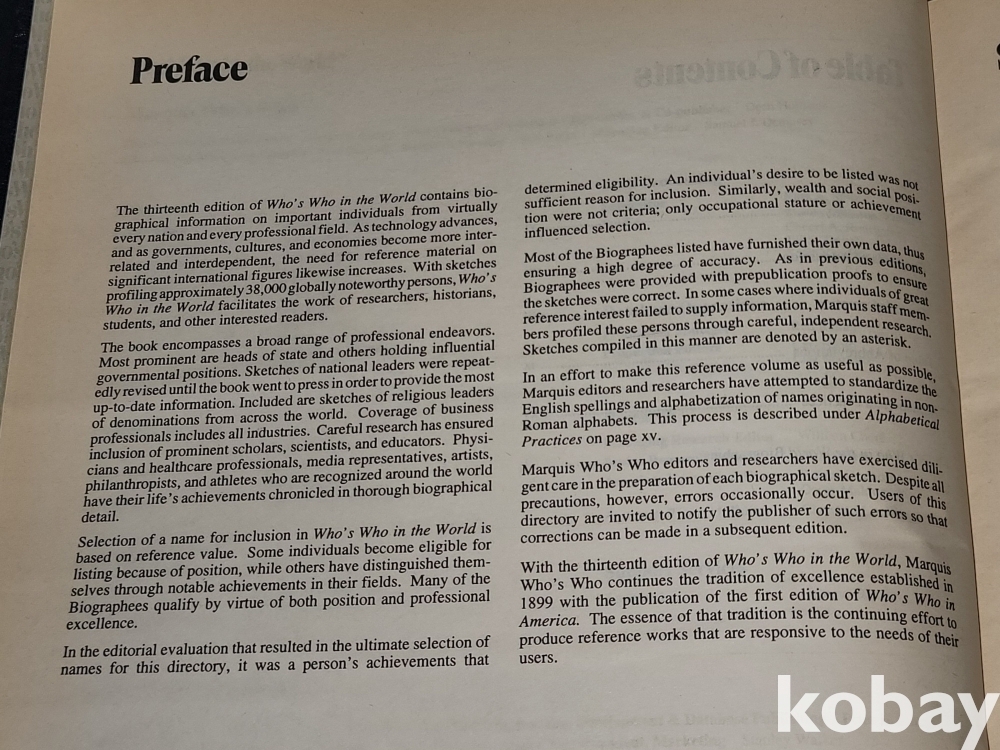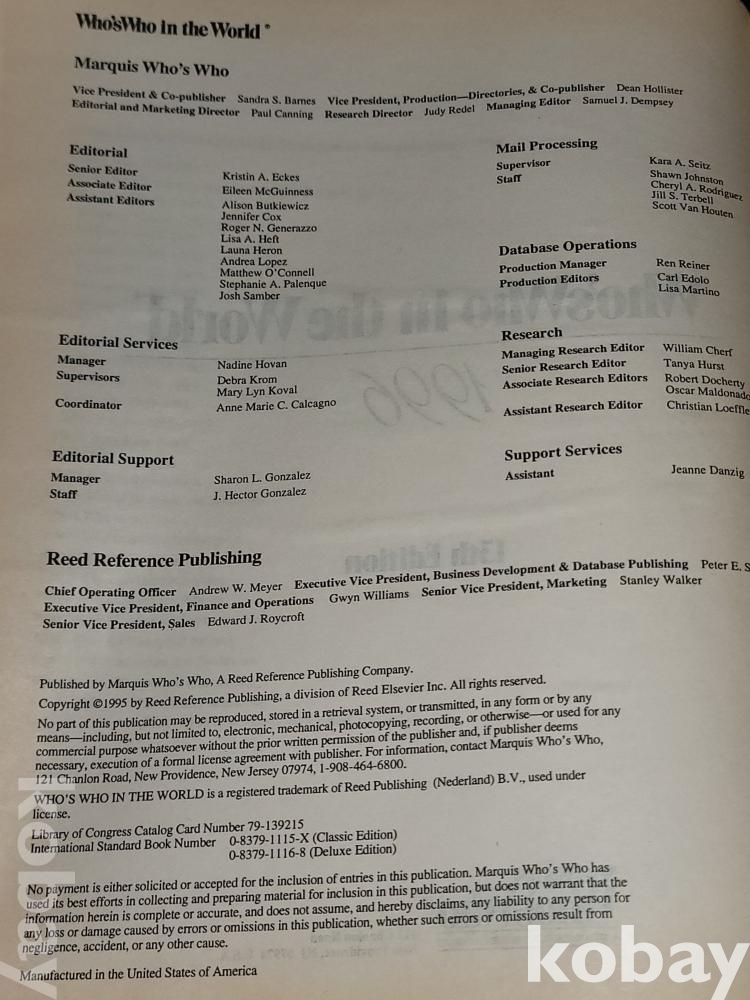 묵직한 하드커버 고급책 Who's Who in the World 1996 세계 인사록 1996 서적입니다.