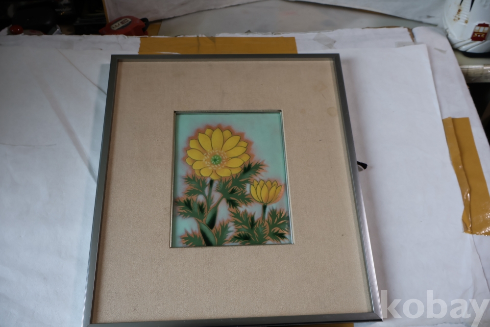 두터운 질감 화려한 문양 등등 일본 칠보의 명작 임니다 액자는 세월의 흔적이 보이는 명품 임니다
