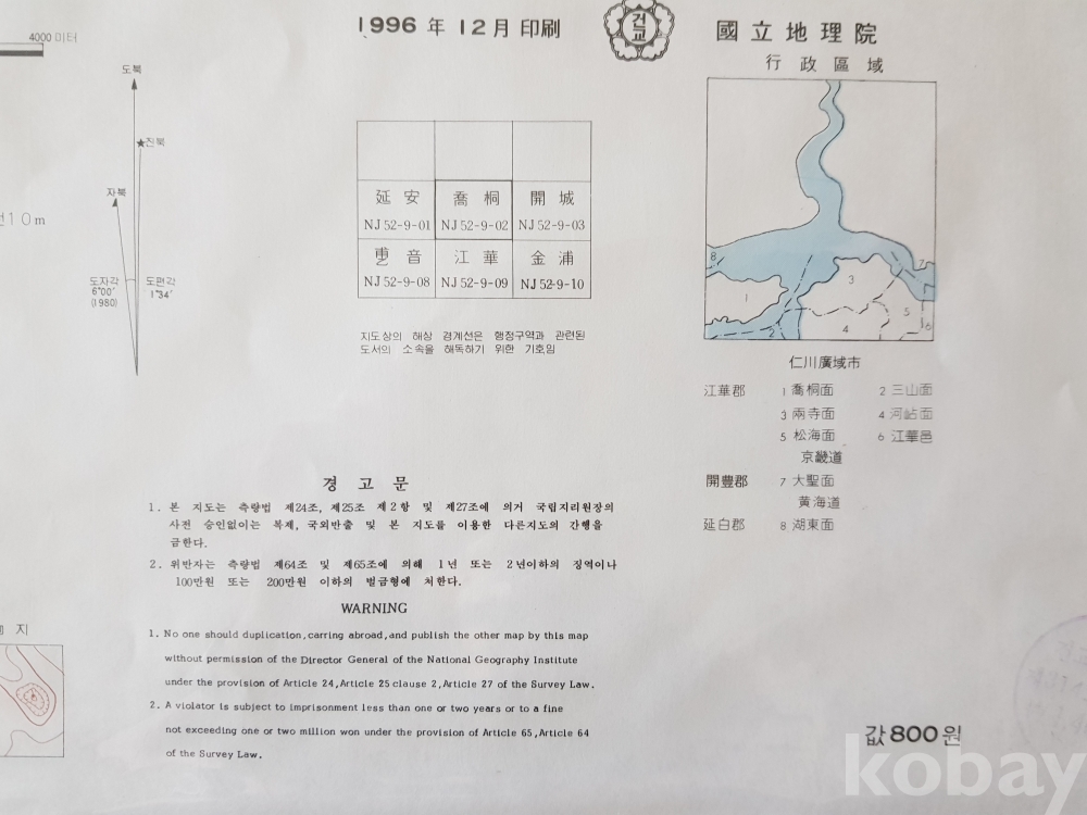 1975년 1:50,000 지도 (교동) 강화군, 개례군, 연백군 수록됨