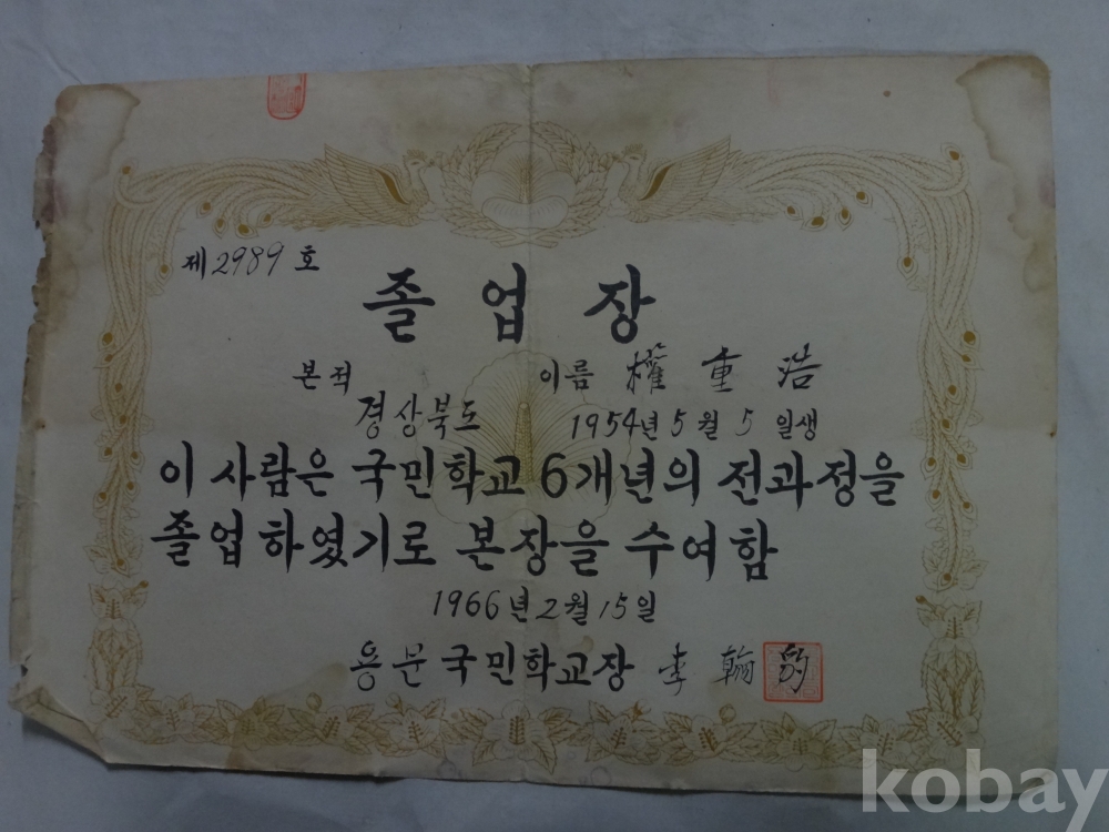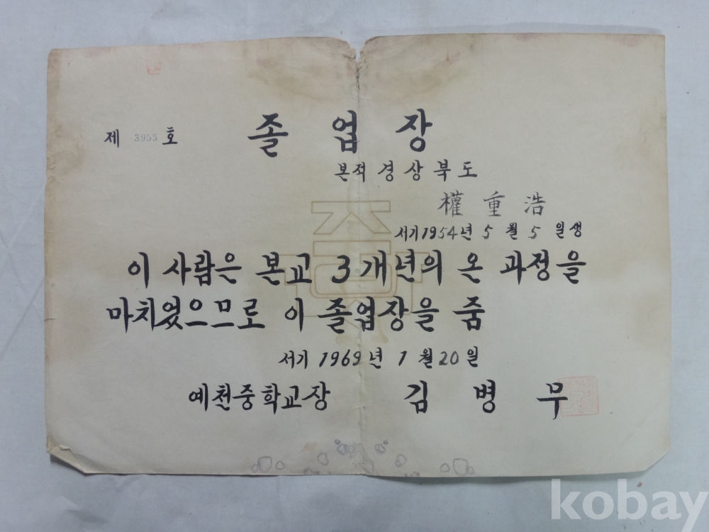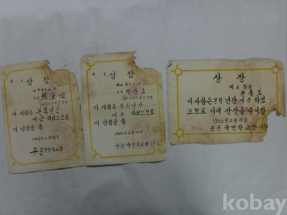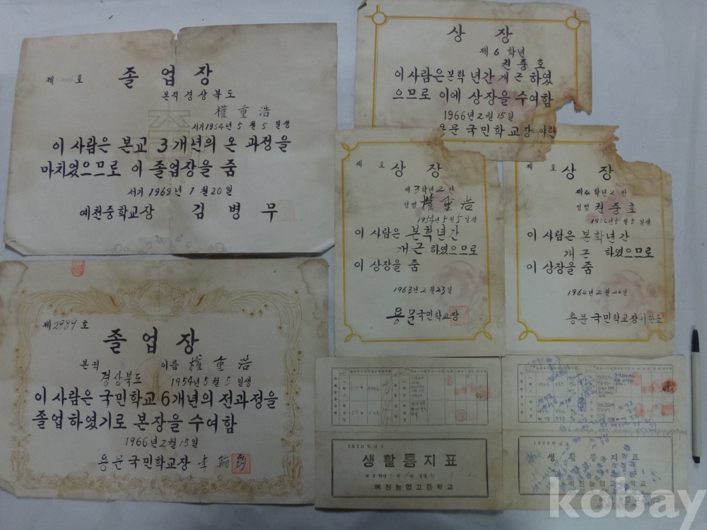 용문국민학교, 예천중학교 졸업장, 개근상장, 생활통지 - 7매일괄 (1966년~, 권중호)
