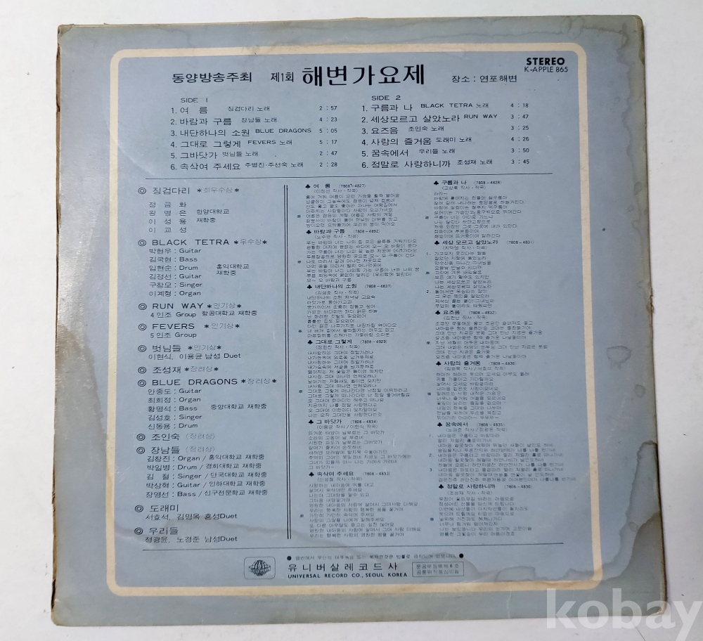 < LP음반 /제1회 해변가요제 (여름/구름과 나/세상모르고 살았노라)>