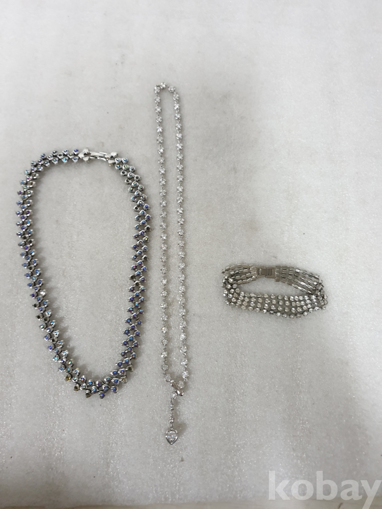 {천원경매} Y-11.1300 큐빅 펄 목걸이 2개,팔찌(큐빅 빠진곳 있음)