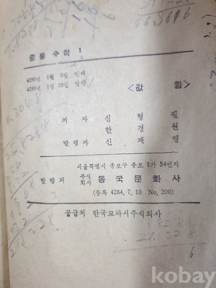 {천원경매} 11-2220 옛날 교과서 중등수학