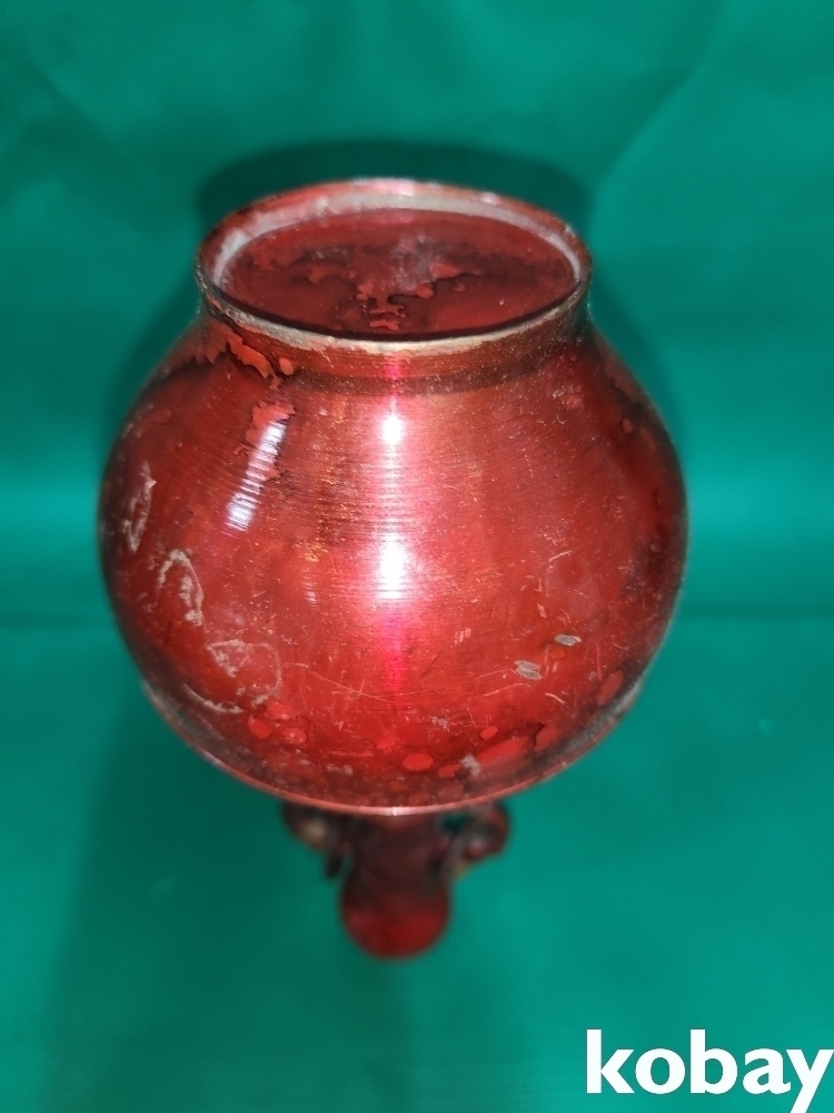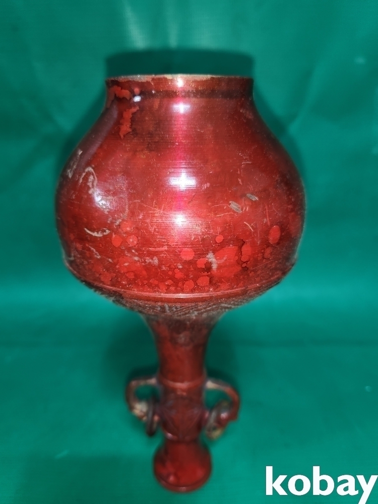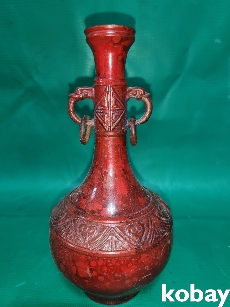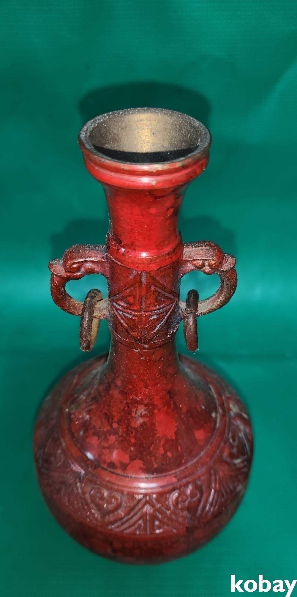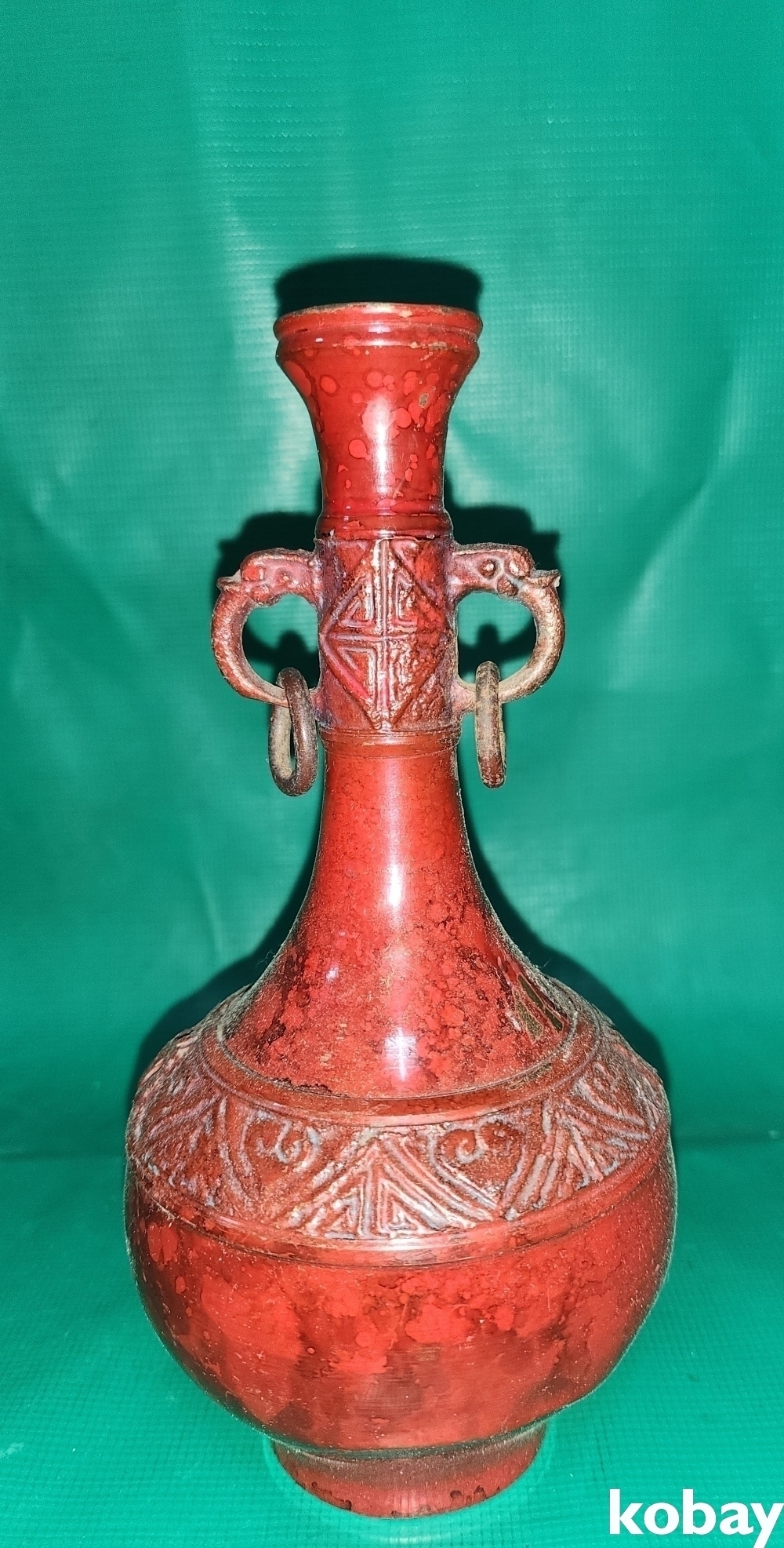 붉은색 옷을 입은 동(銅) 재질의 용문양 양이병입니다,