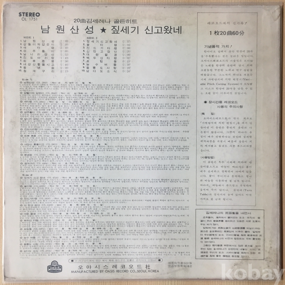 ⊙ 1976년 / 오아시스레코드 – OL 1751