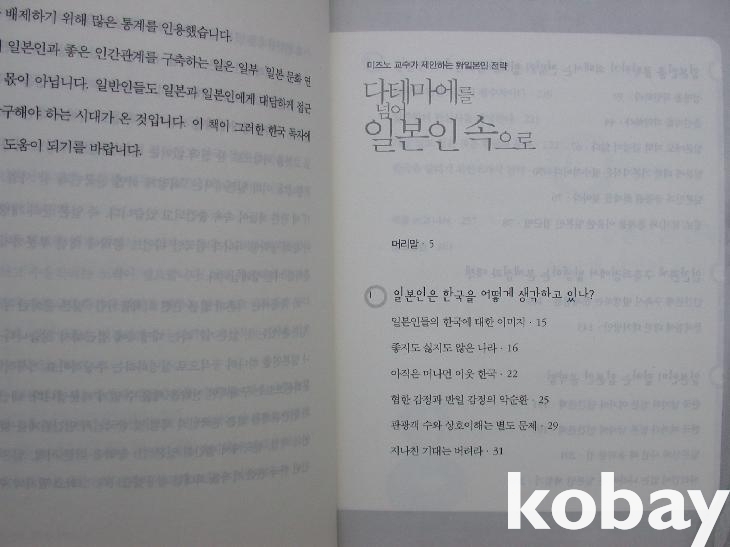 지은이는 천리대학을 나와 전남대에 재직한다고 소개하였다. 앞날개에 '다테마에(健前)'란 겉치레란 말이라는 설명이 있다. 본문은 5장으로 구성하여 설명하였다.