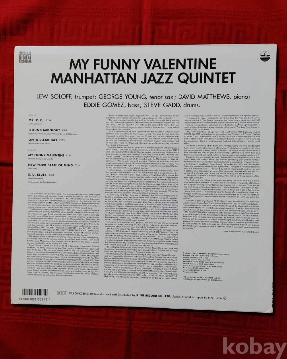 Manhattan Jazz Quintet 앨범입니다 / 트랙은 별도로 제공합니다 / Nm+