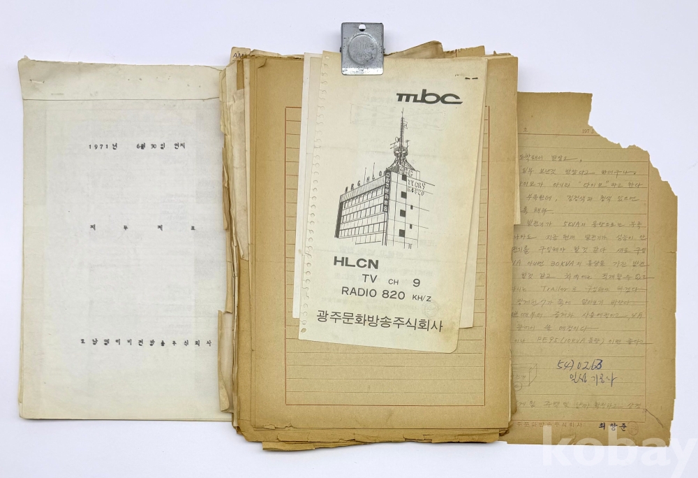 설 명 | 1970년대 광주 문화방송(MBC)에서 사용했던 자료 일괄이다. 1971년 호남텔리비젼방송주식회사 재무재표, 광주문화방송주식회사 사칙, 선급 관련 서류, 영수증, 업무 지시로 쓴 메모 등을 확인할 수 있다. 1975년 메모중 광주지역에 간첩이 나타났다는 이야기가 특징적이다. | |||||