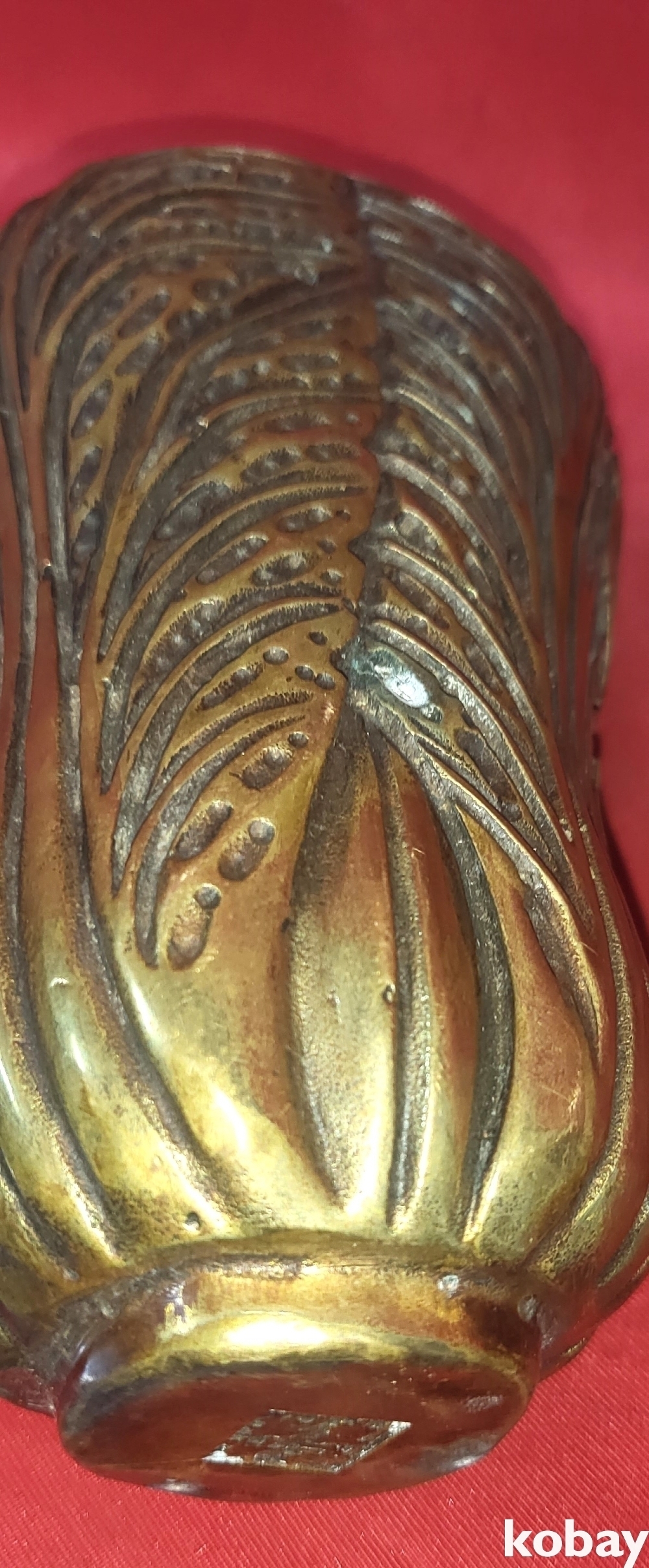 건륭연제 청동 배추와 벌래 문양 배추와 곤충(거미) 조각품입니다,