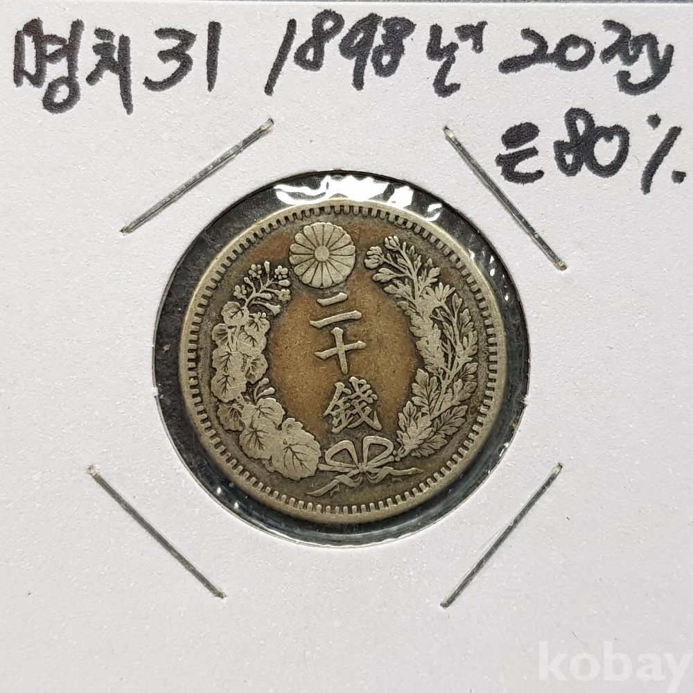 - 진품 일본 명치 31년(1898년) 20전 / 이십전 욱일 은화