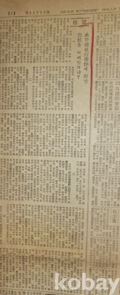 1958년에 발행된 신문 사설 복사입니다,