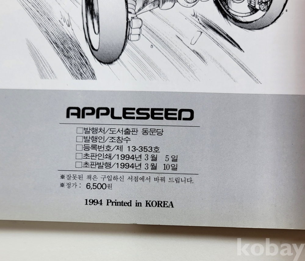 물 품 명 | APPLESEED : illustrated collection / 1994년 초판 / Shirow Masamura / 도서출판 동문당 |