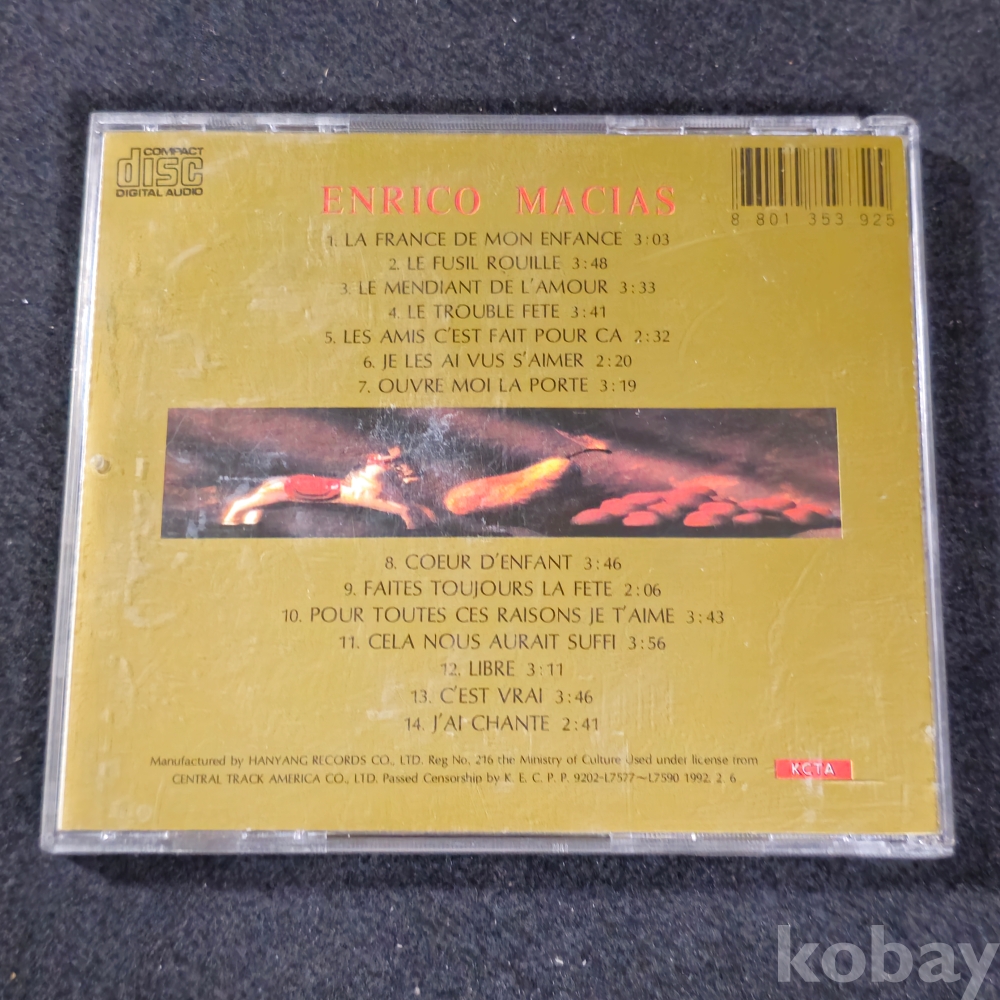 (천원경매)(((국내가요/POP/영화음악/CD))) Enrico Macias (앙리꼬 마샤스) Greatest Hits CD (1992)