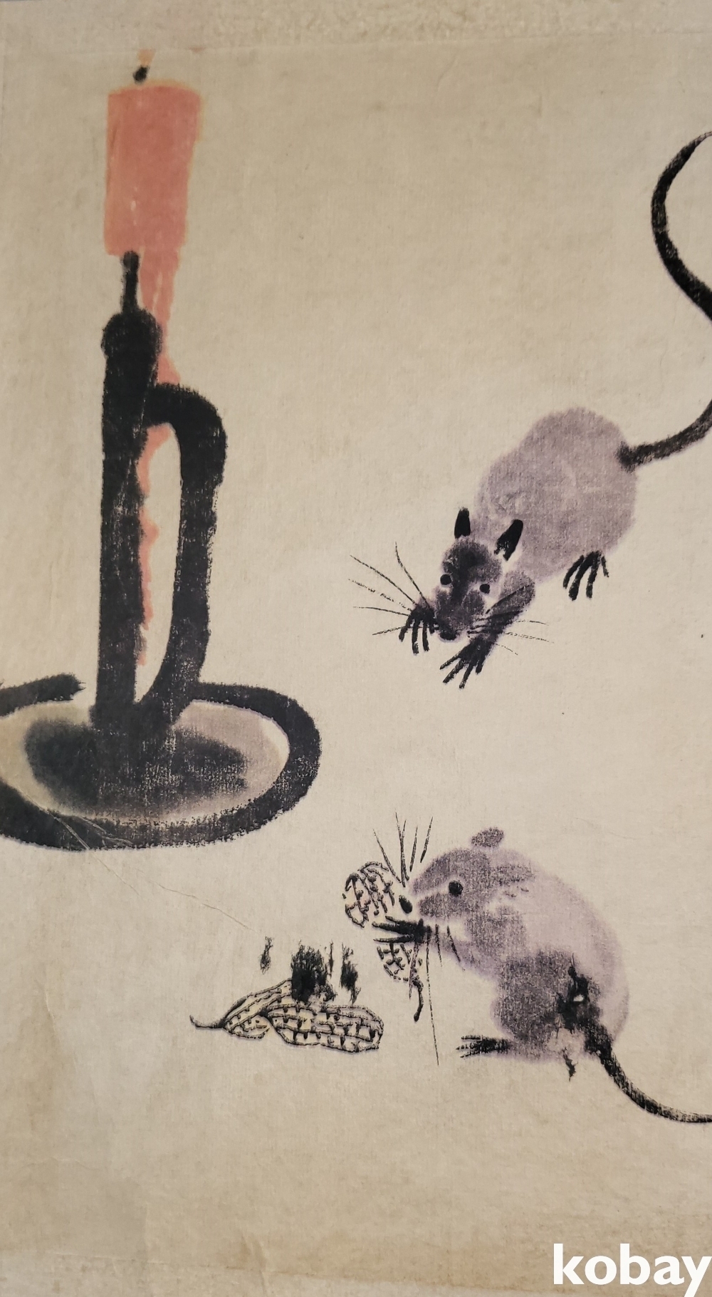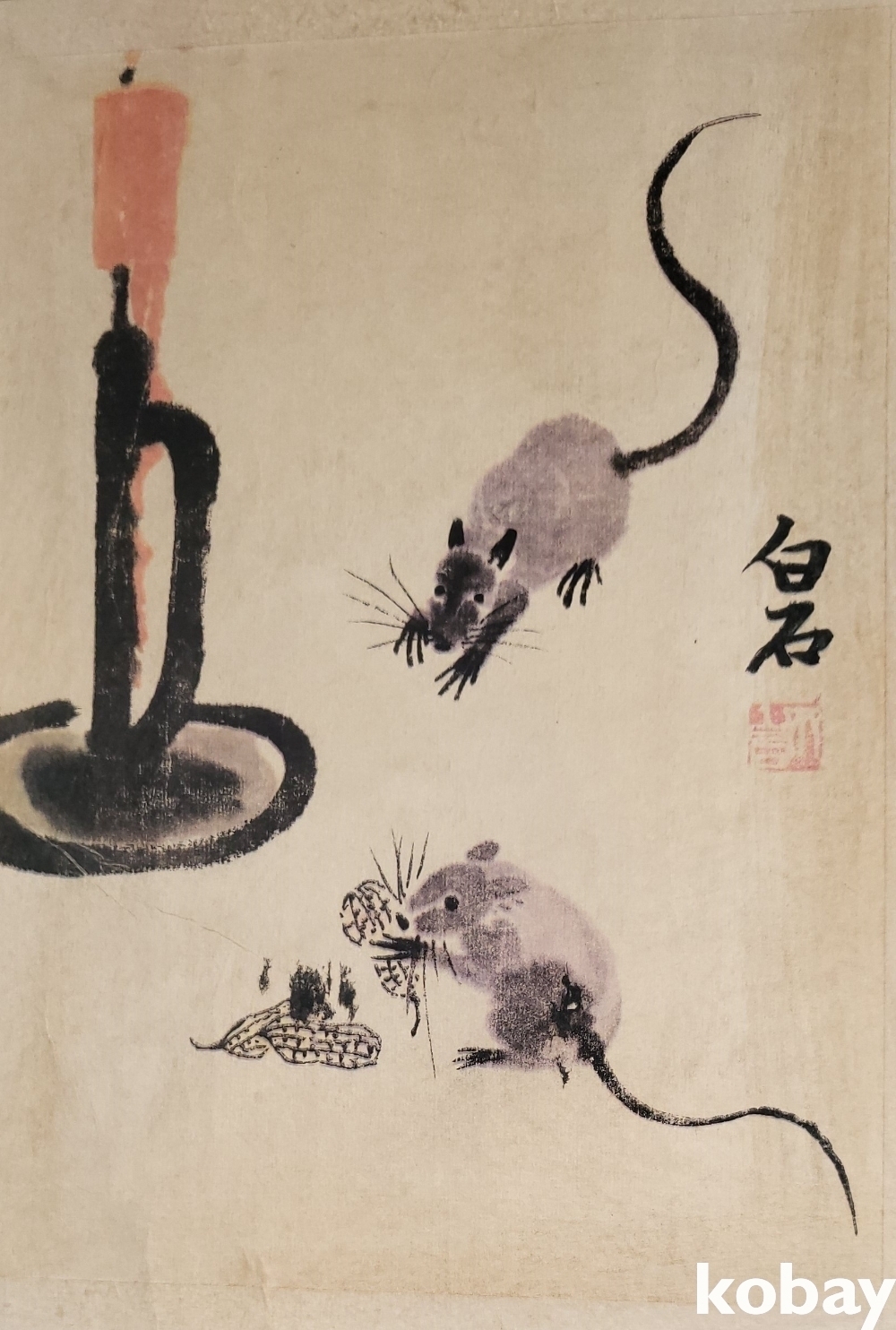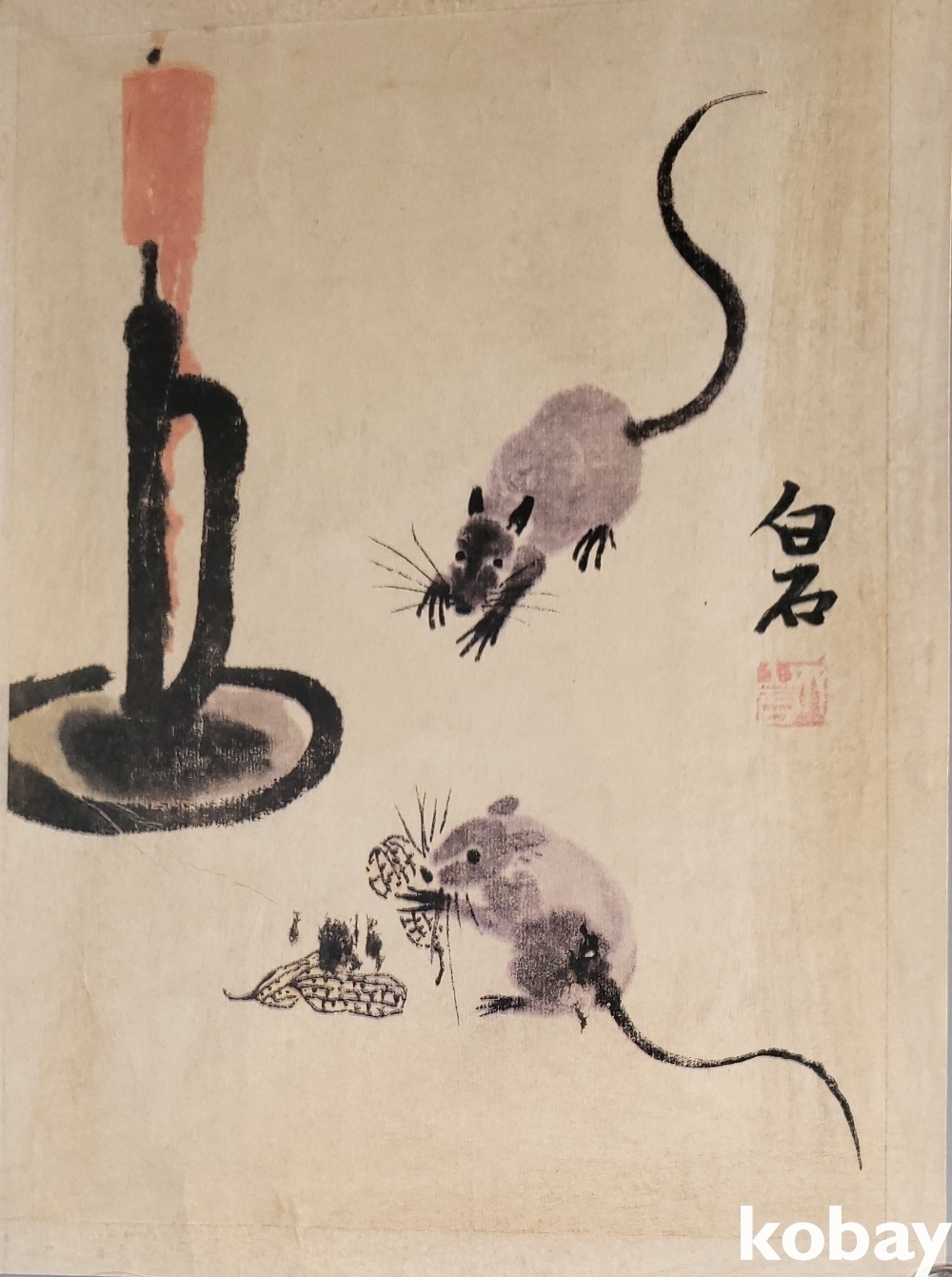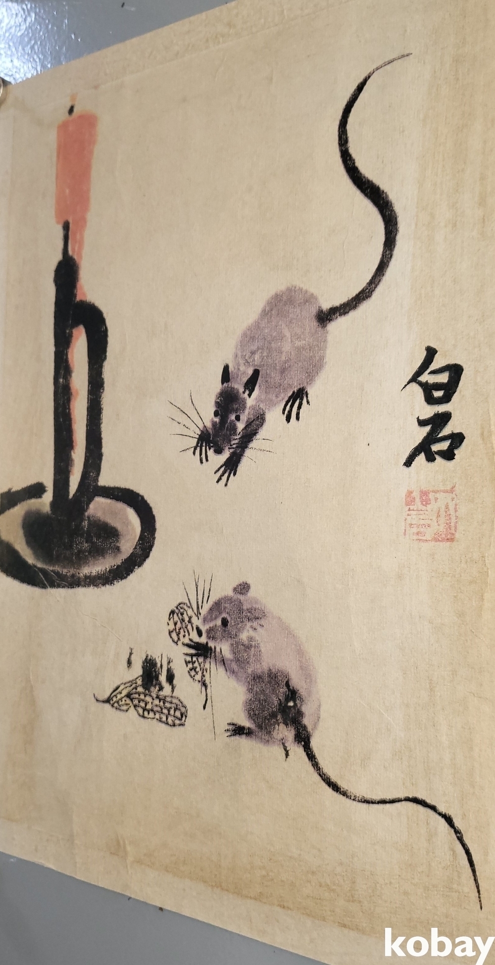 중국의 유명화가 제백석 수결이 보이며 종이에 채색된 쌍쥐 (雙鼠) 그림입니다,