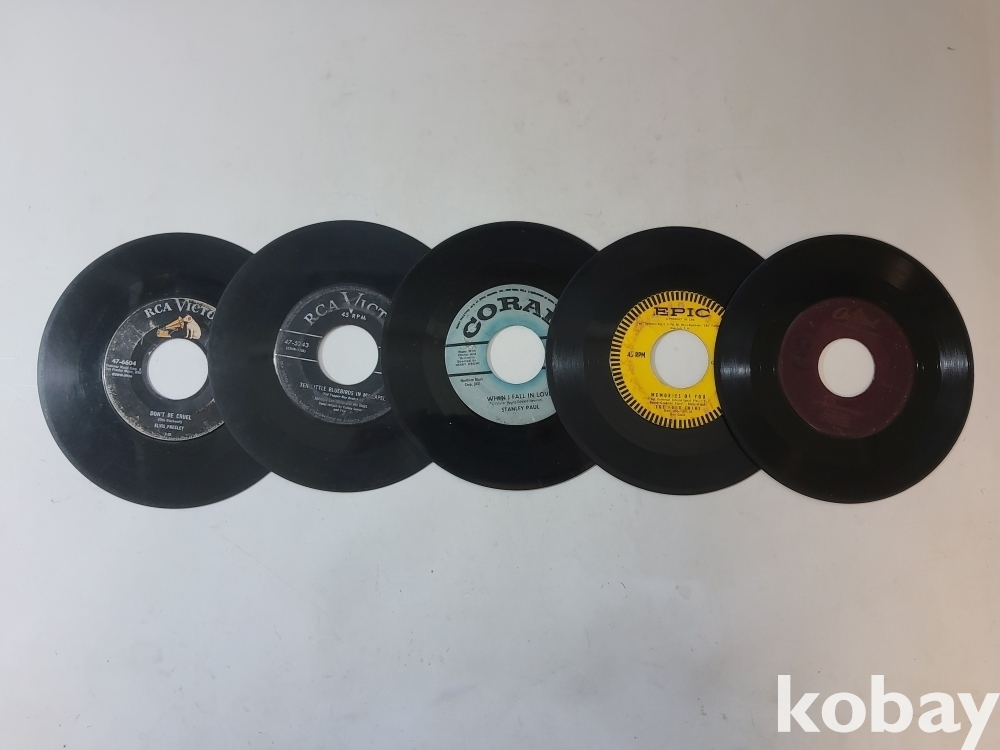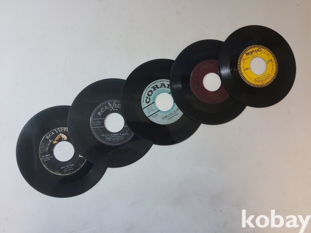 세월 거슬러 올라 가는 6~70년대에 미군 클럽의 위락기기인 쥬크박스(Juke Box)에서 수집된 EP음반(Extended Play, 일명 '드너츠'음반) 5매입니다.