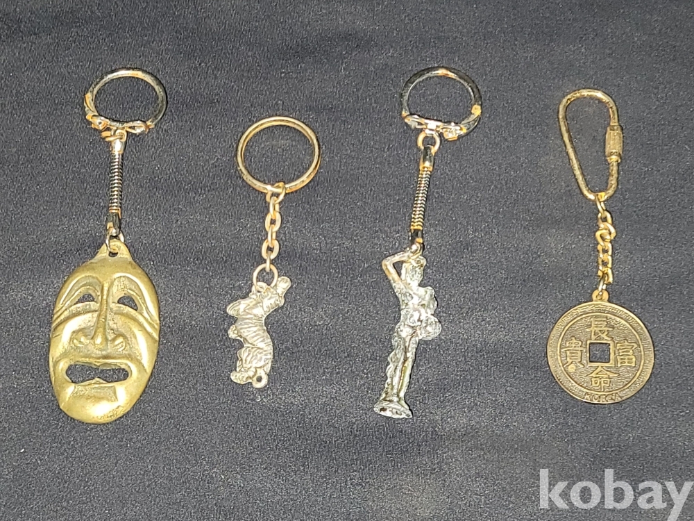 빈티지 세월 감이 느껴지는 각종 옛날 키링 열쇠고리 4종 일괄입니다.