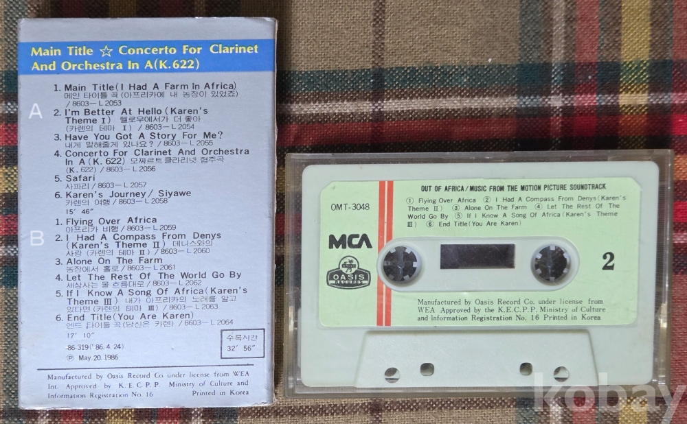아프리카 탈출(OUT OF AFRICA) OST (1986) 카세트테이프입니다