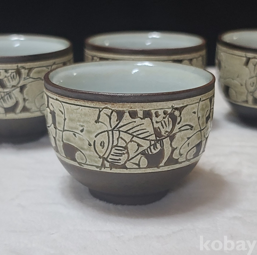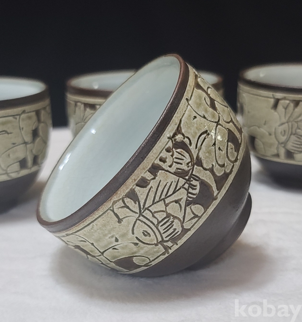 다관과 숙우, 잔 5점으로 구성되어진 작품입니다.