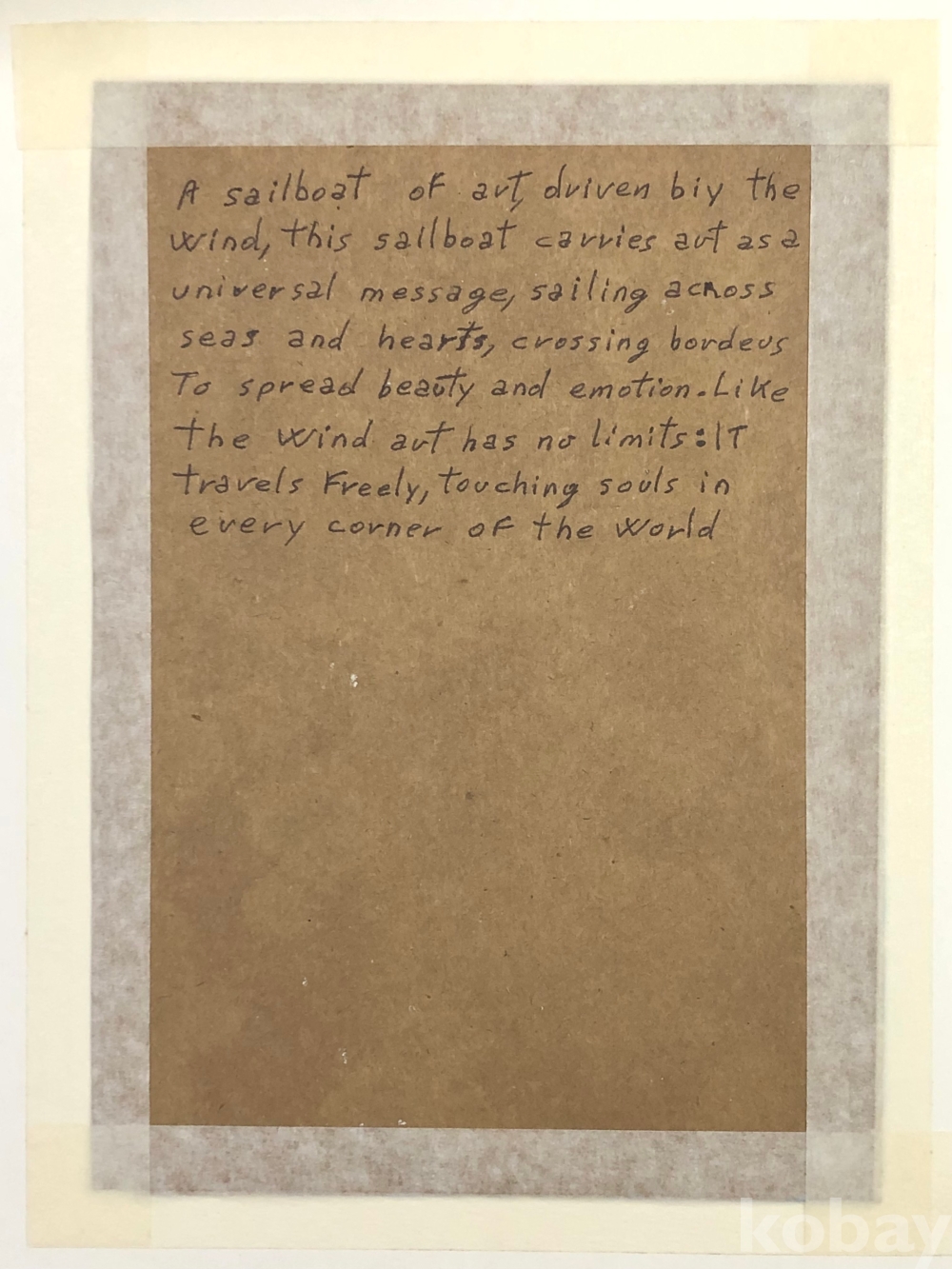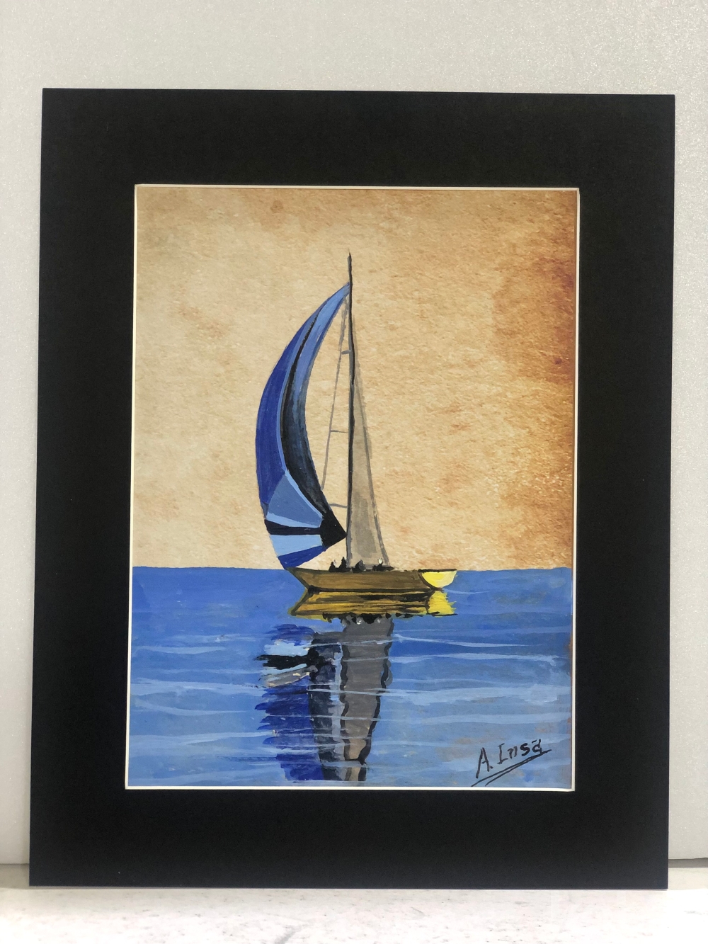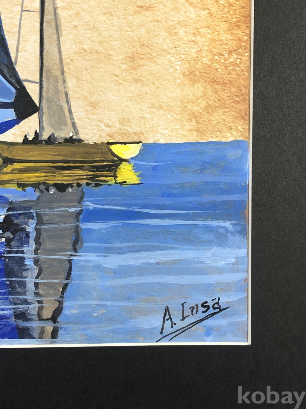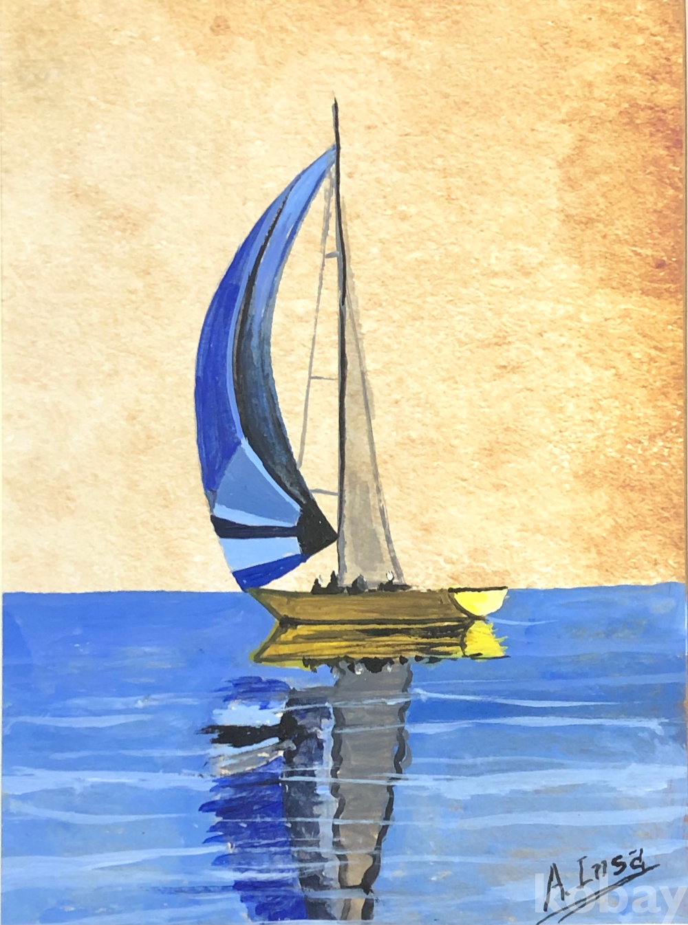 돛의 푸른 색상과 바다의 반사 효과가 강조되어, 바다의 생동감을 전달하는 작품입니다.