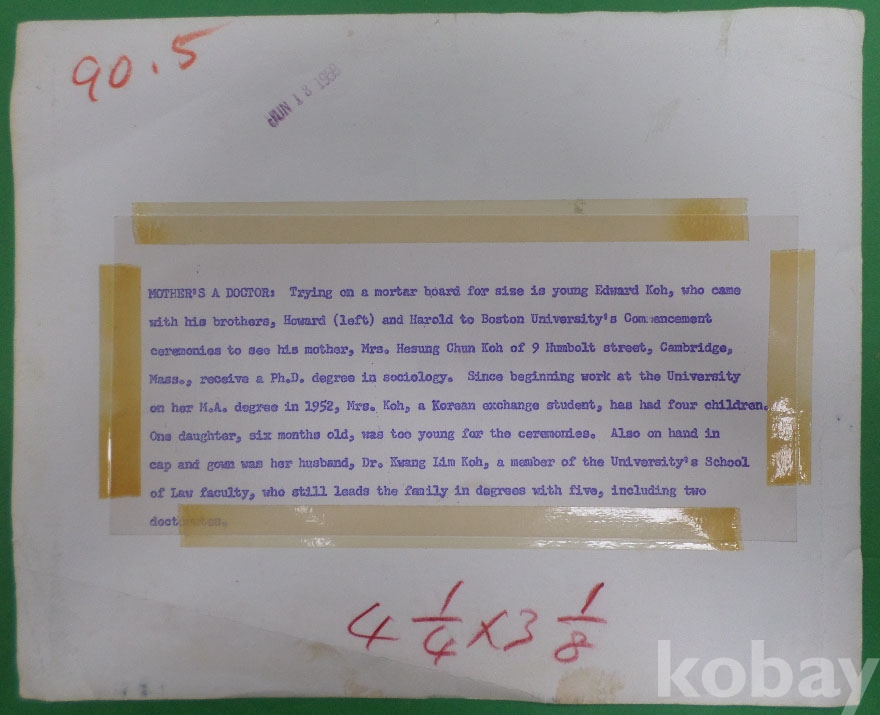 **** 1959년 사진(MOTHER'S A DOCTOR...)/후면 영문 설명이 있음