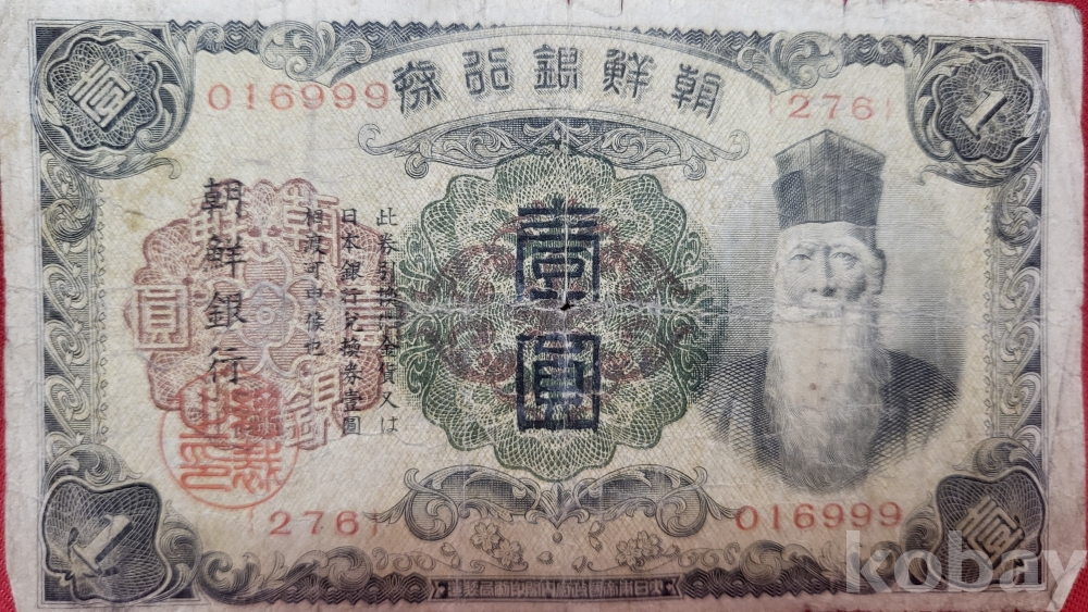 T ㅡ2권 7호 넷좌번 ////// 일제강점기 때 사용되었던 조선은행의 일원 지폐입니다,