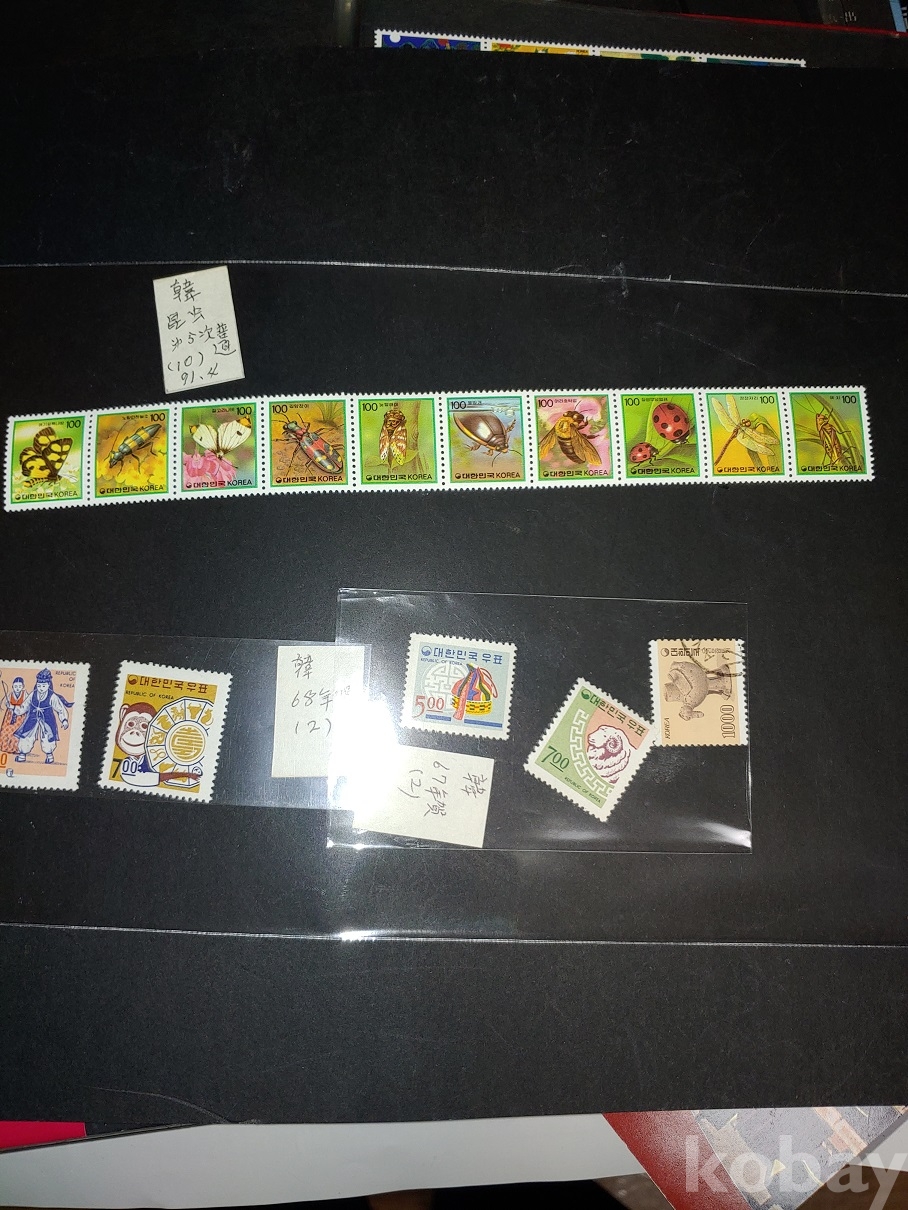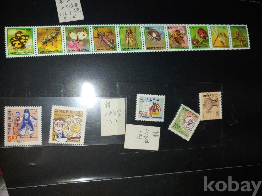 연화우표 5매(67,68년) ,한국의 곤충10매(91년)