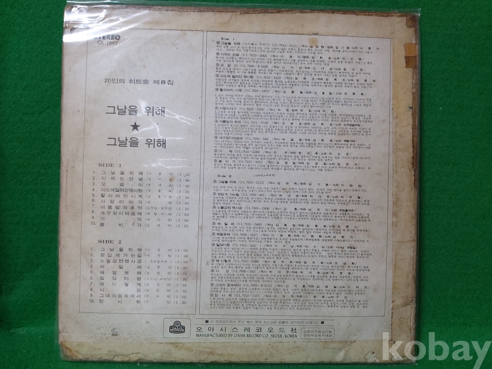 LP.레코드 = 가요 = 오아시스 20인의 히트송- 그날을 위해 / 에밀레