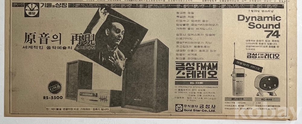 금성 라디오 광고가 실린 1974년 한국일보 낱장입니다.