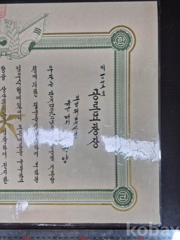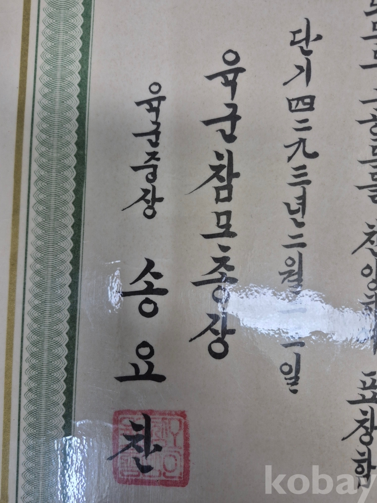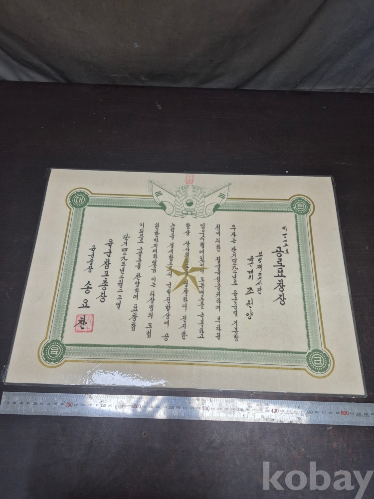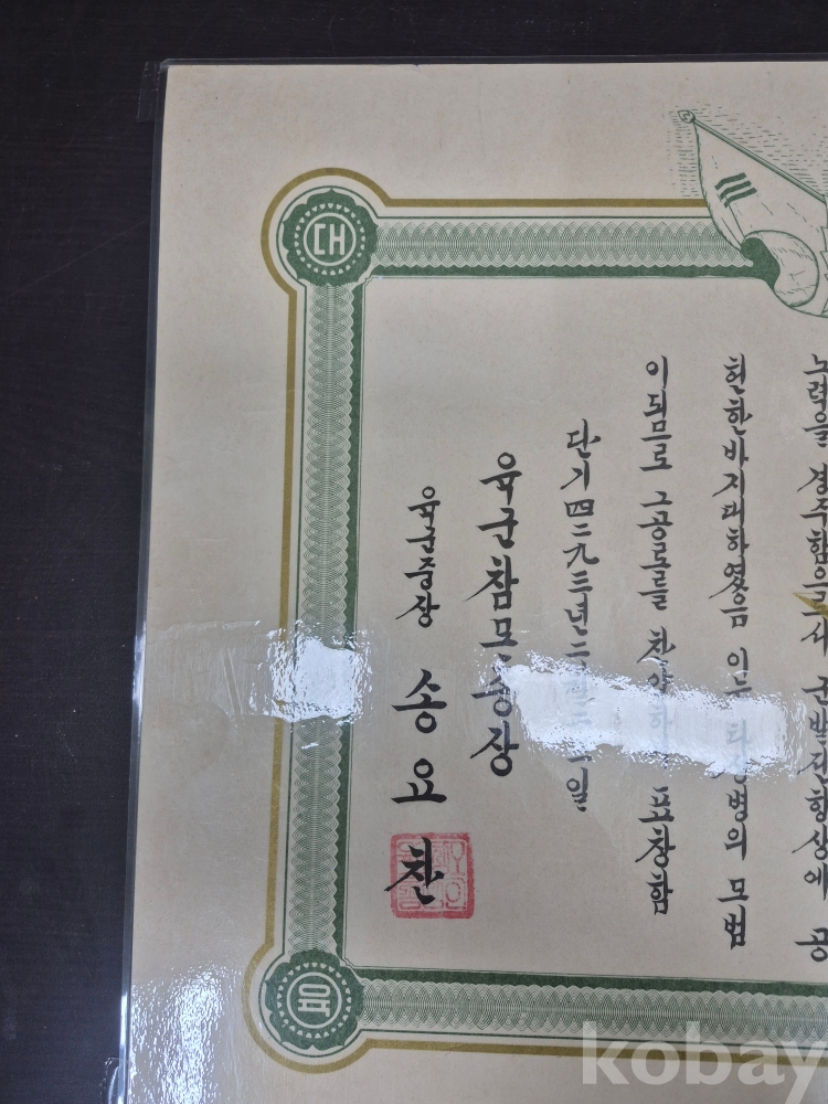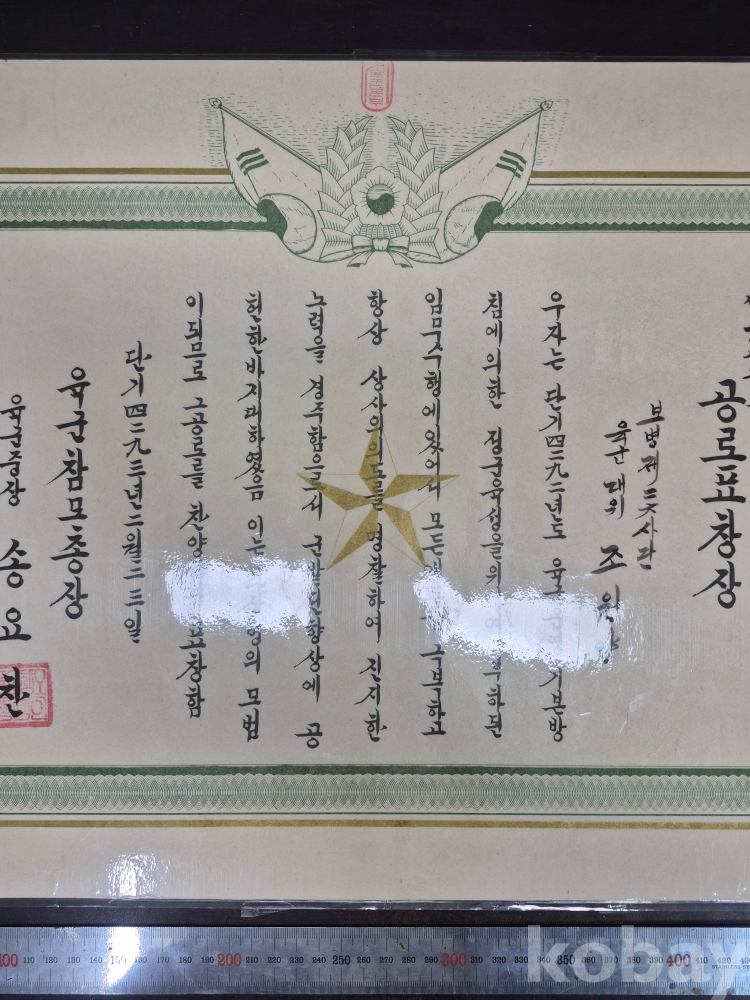 4293년( 1960년 ) 보병 제 26사단 공로 표창장 육군 참모총장 육군중장 송요찬 표창장 54*39