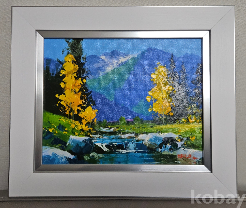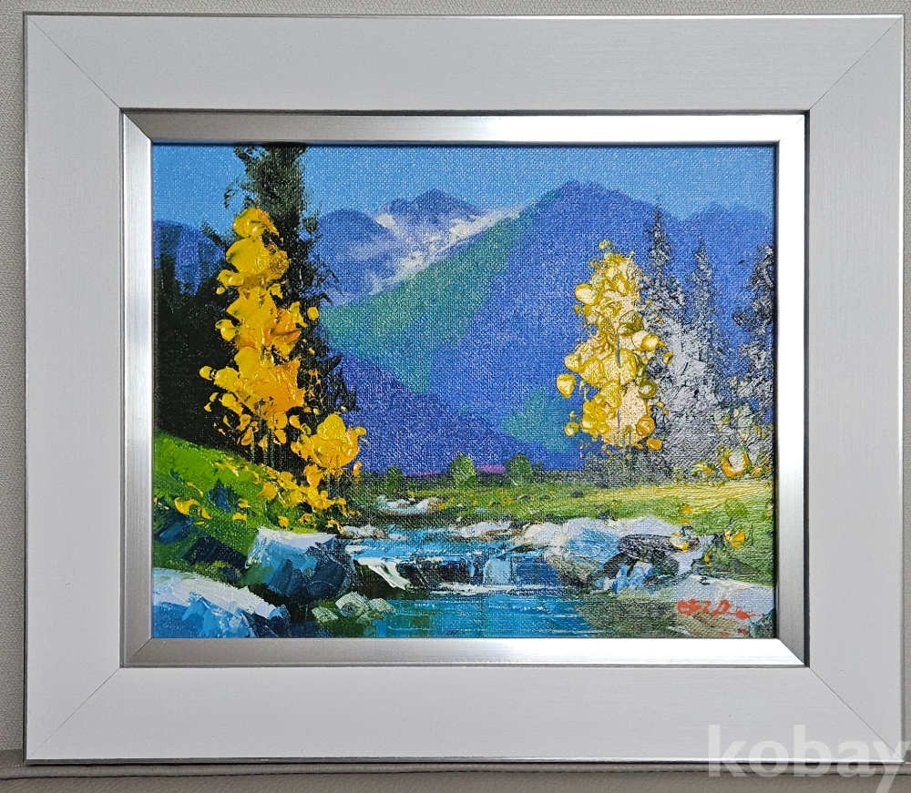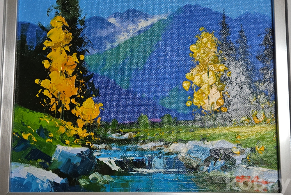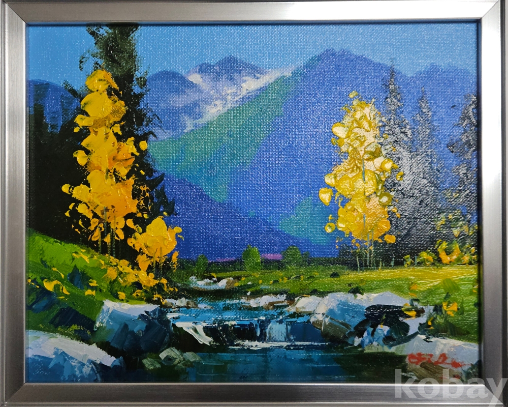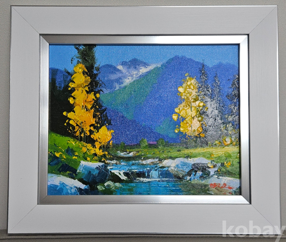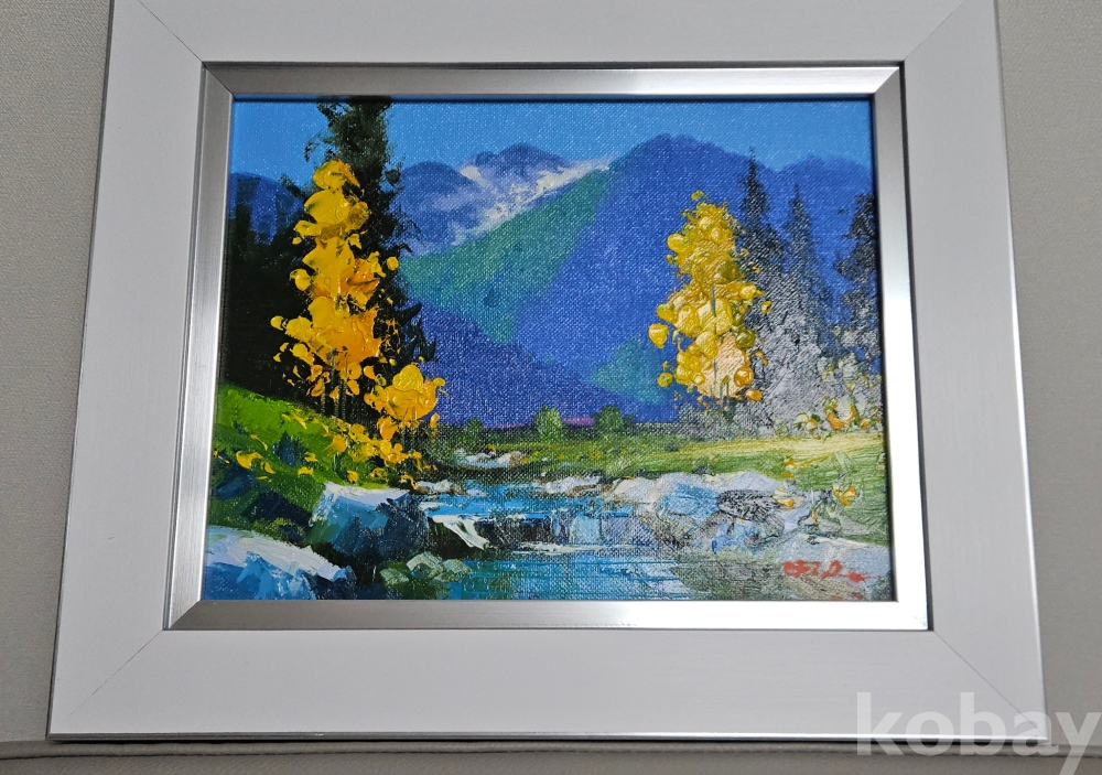산과 계곡이 어우러진 자연풍경을 나이프 터치를 사용하여