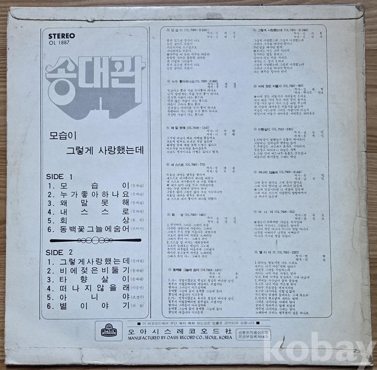 | 자켓상태 | EX : 약간의 마모, 모서리 찢김 존재 | 음반상태 | EX : 재생에 영향 없는 가벼운 기스 존재 | 발매정보 | 초반 | 가사지여부 | 유 |