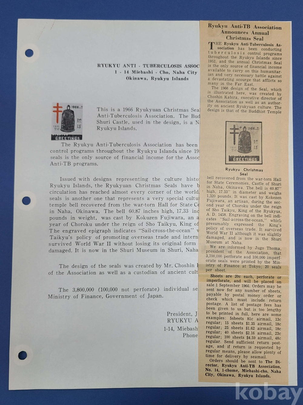 [크리스마스 씰] 琉球(RYUKYUS.류큐)/1966년(무공,안내서 포함)