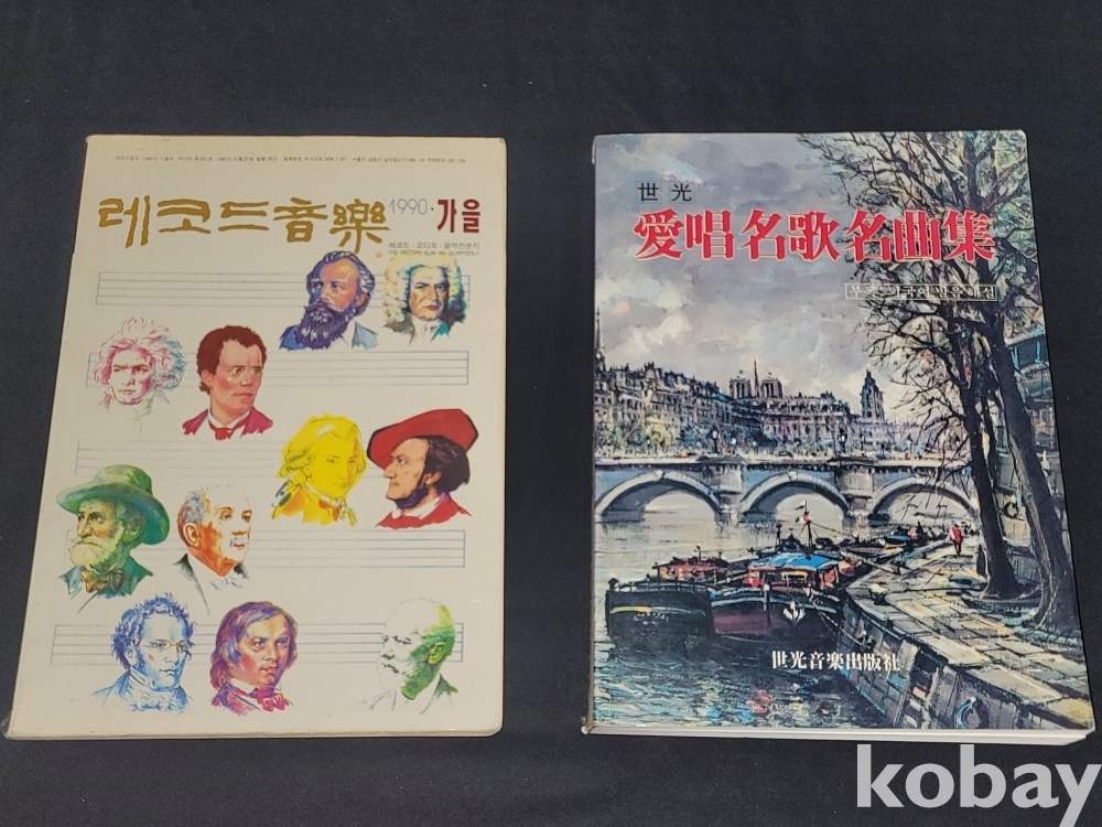 빈티지 1990년 발행 서적 세광 애창 명가 명곡집, 레코드音樂(음악) 등 2권 일괄입니다.