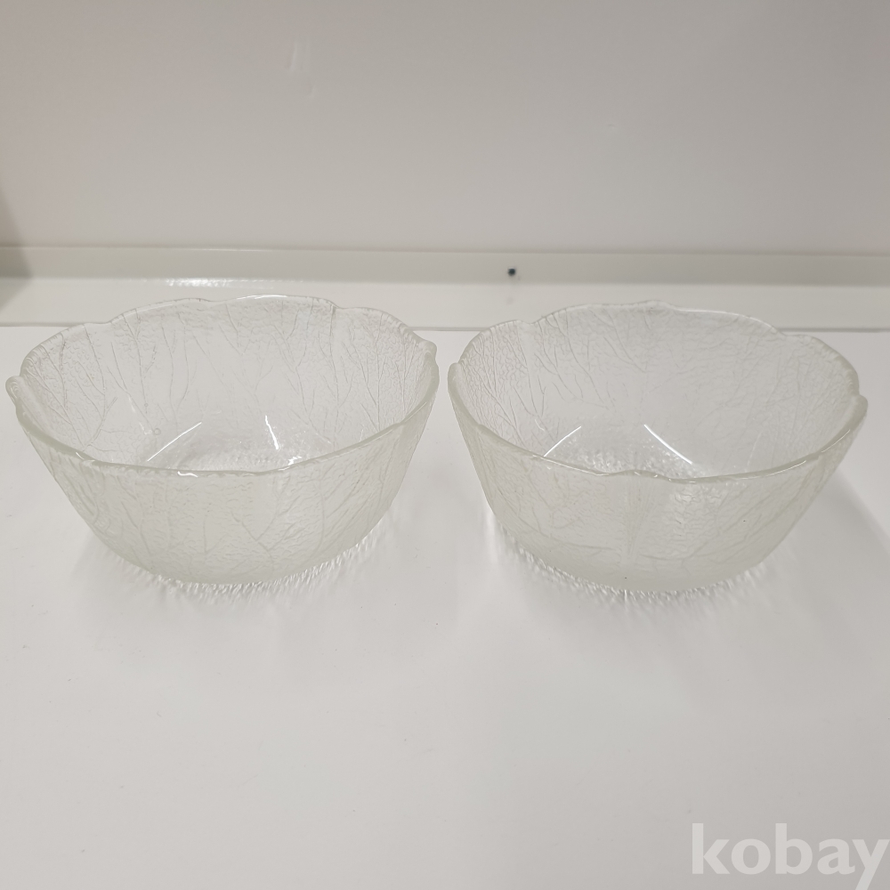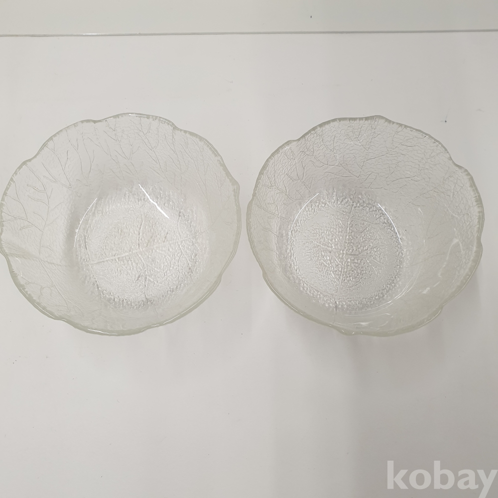 『천원경매』11-0228 나뭇잎 무늬 유리 그릇 2개 (지름 11.5cm)