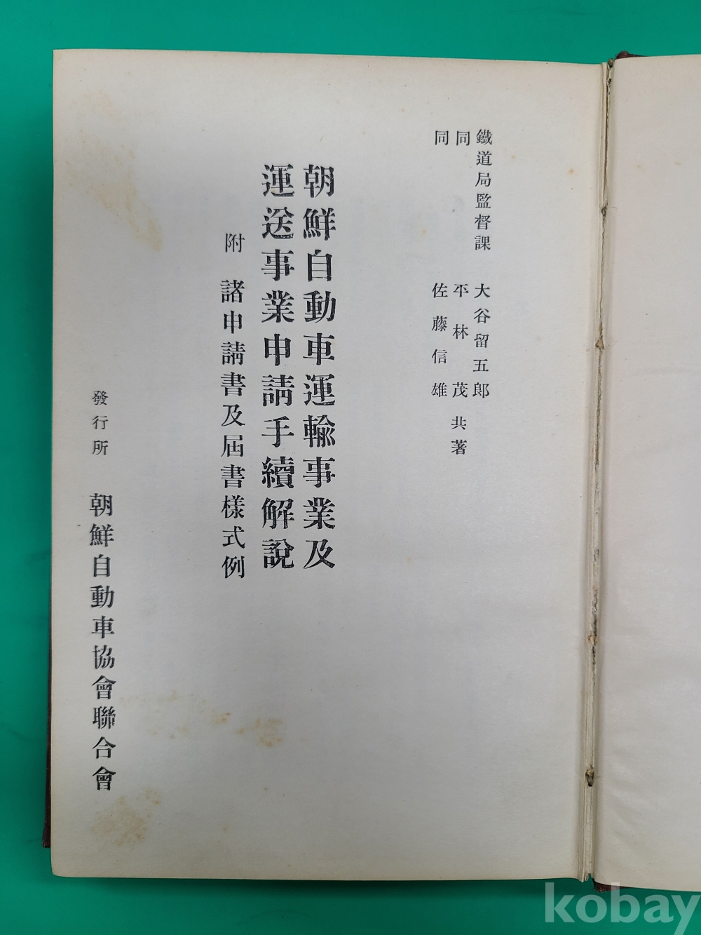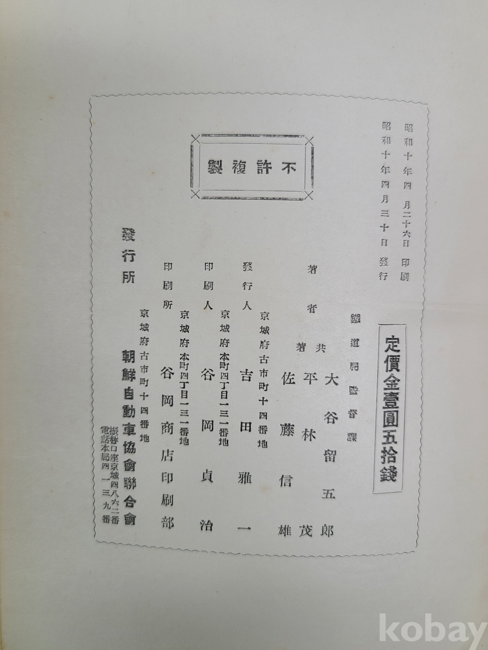 저자 조선총독부철도국감독과 대곡유오랑.평림무.좌등신웅 공저