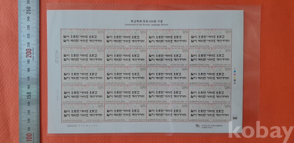 2008년 한글학회 창립 100돌 20매 전지 입니다.