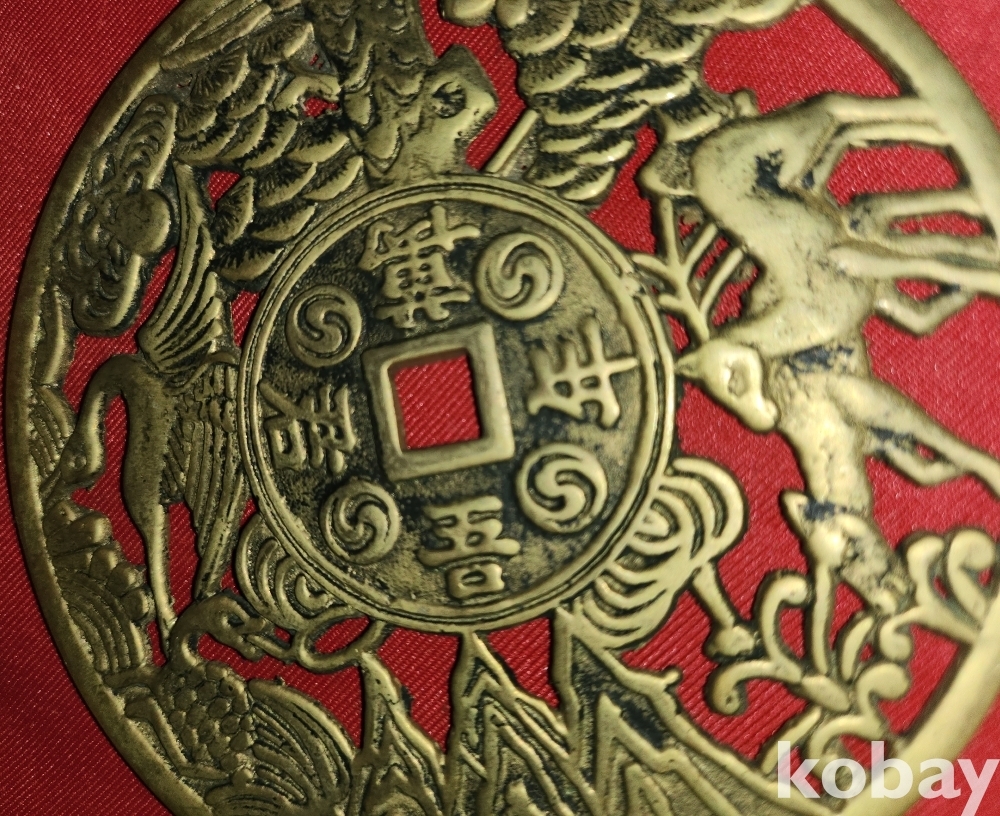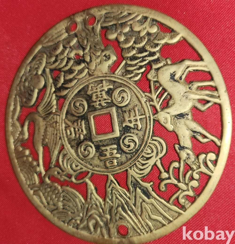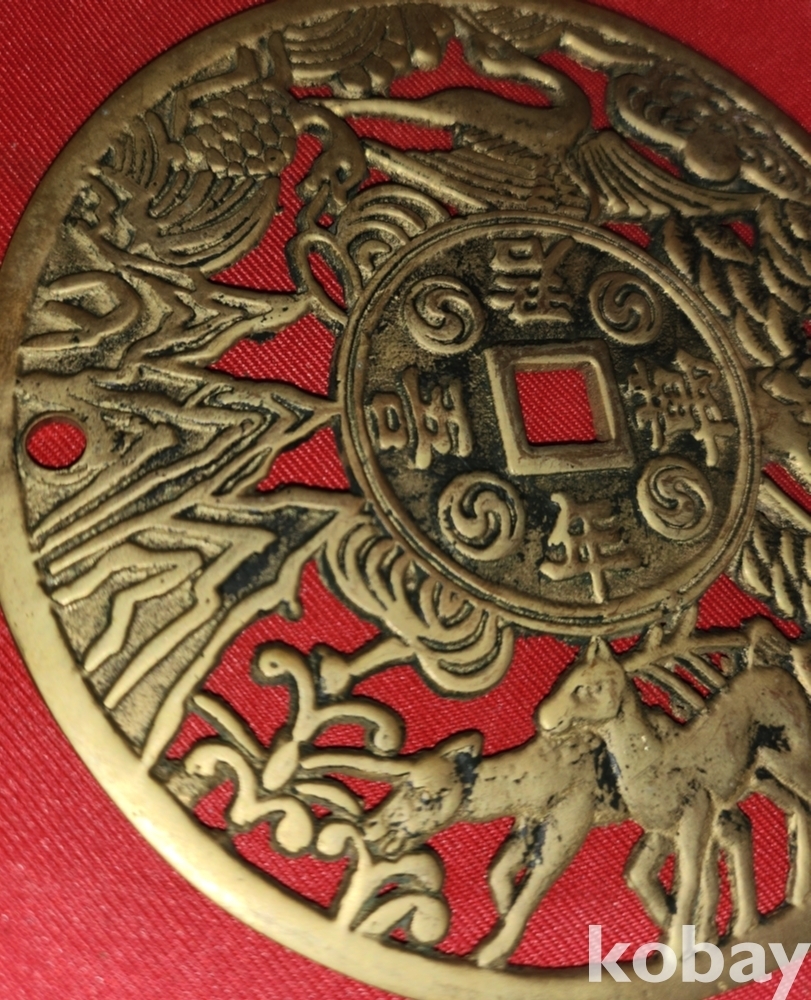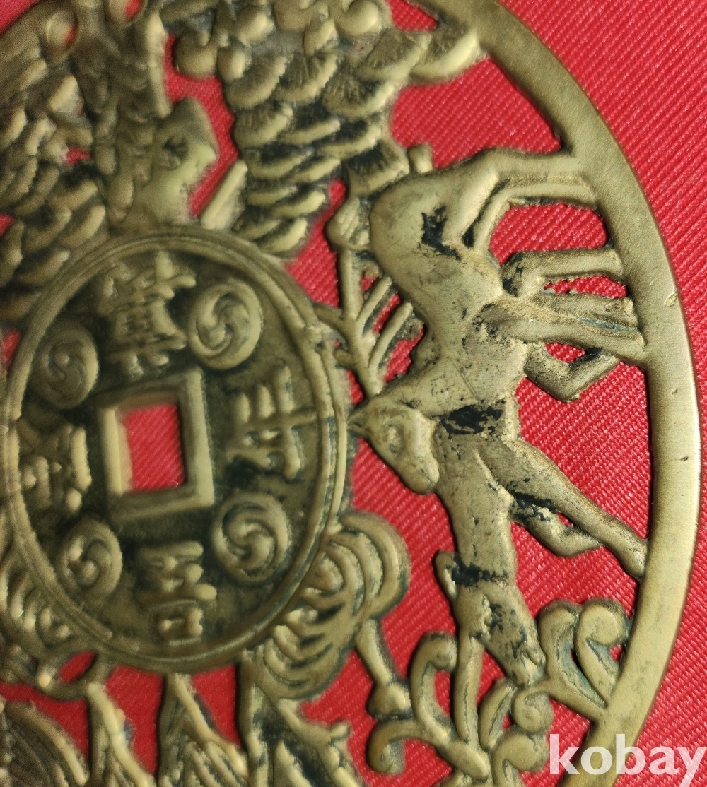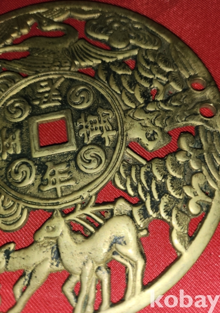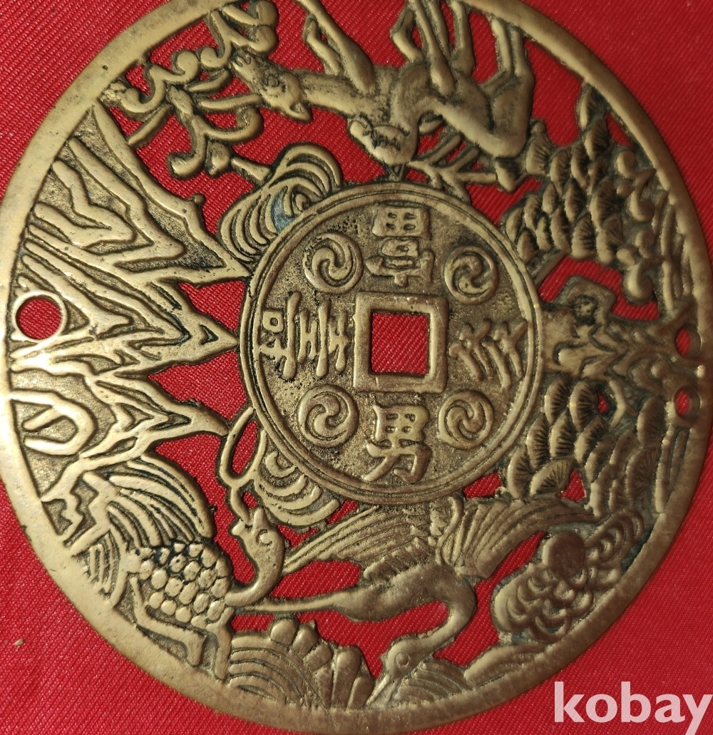 황동으로 만든 만년오군(萬年吾君) 장생문양 큰 별전 열쇠패입니다,