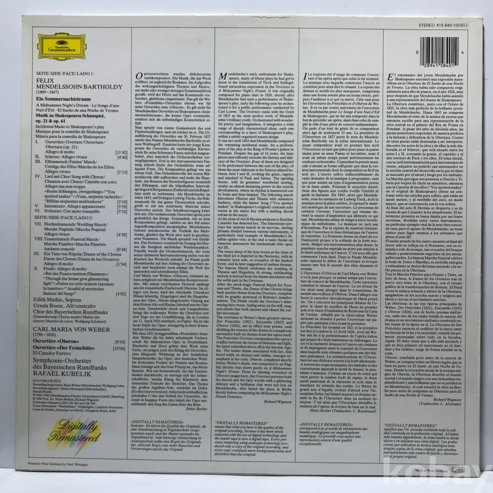LP 35,950-65 Mendelssohn A Midsummer Night's Dream Carl Maria Von Weber . 수입 자켓 EX+ 알판 EX+