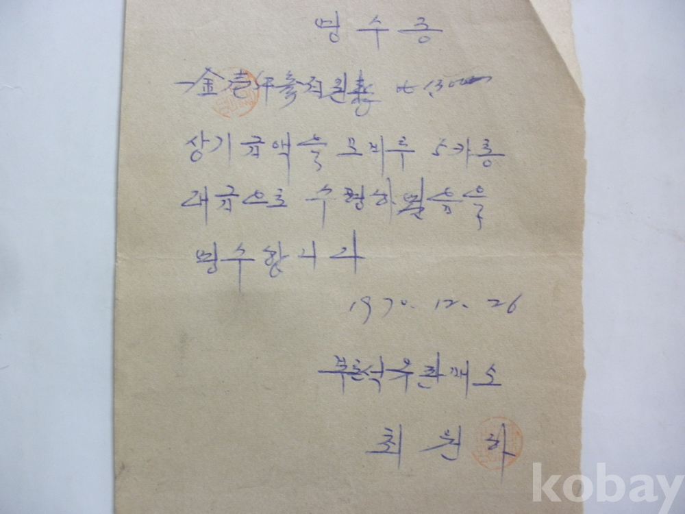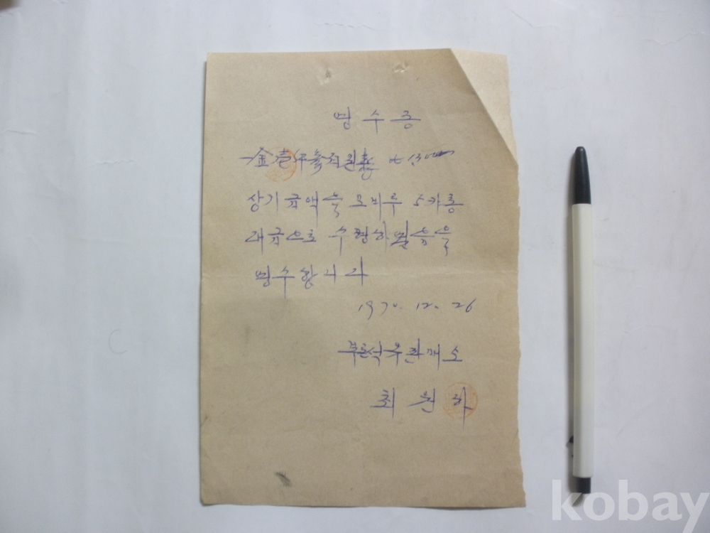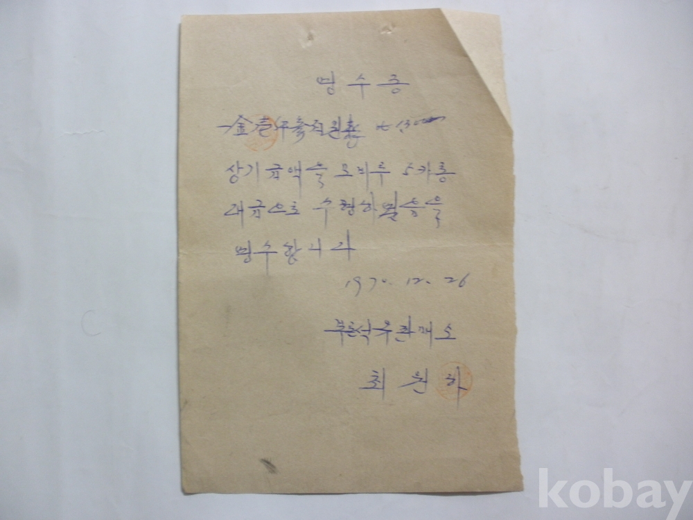 모비루 5카롱 대금 - 영수증 (1970년, 부론석유판매