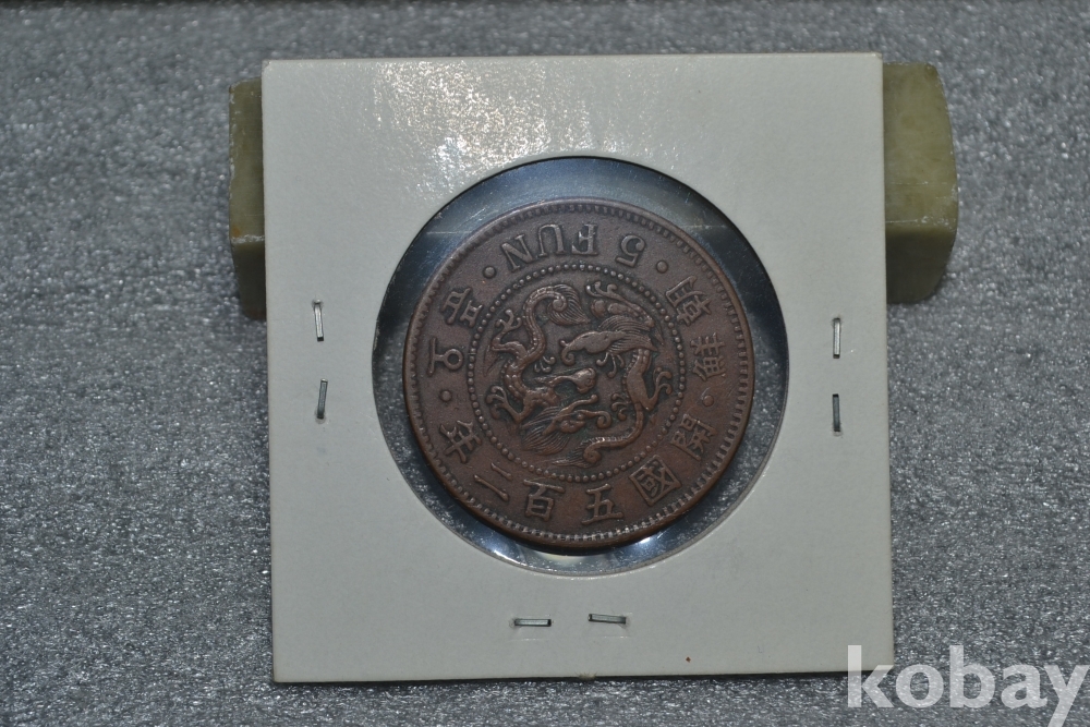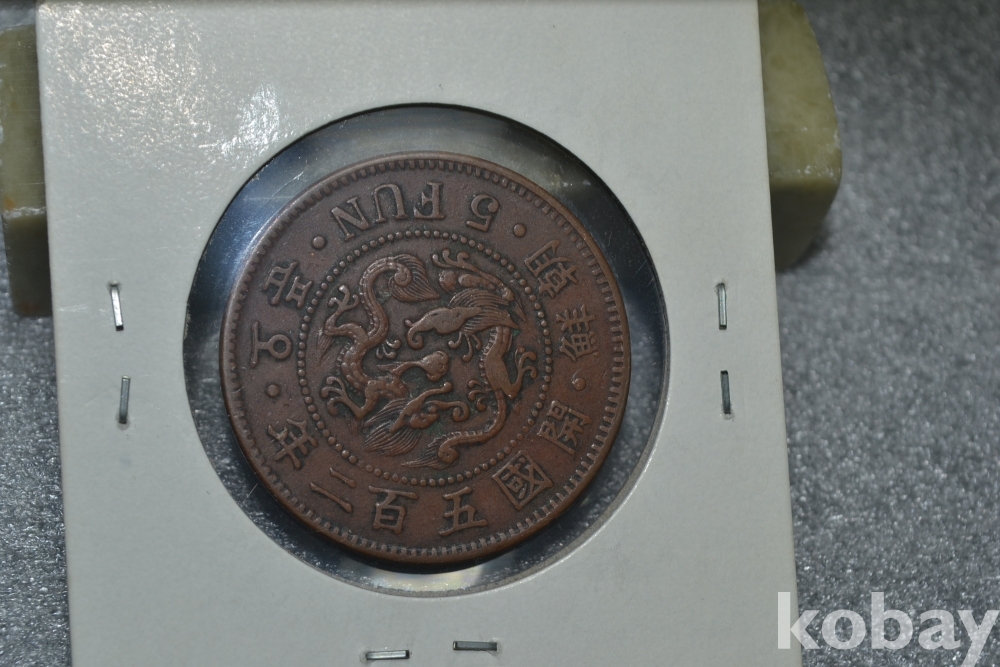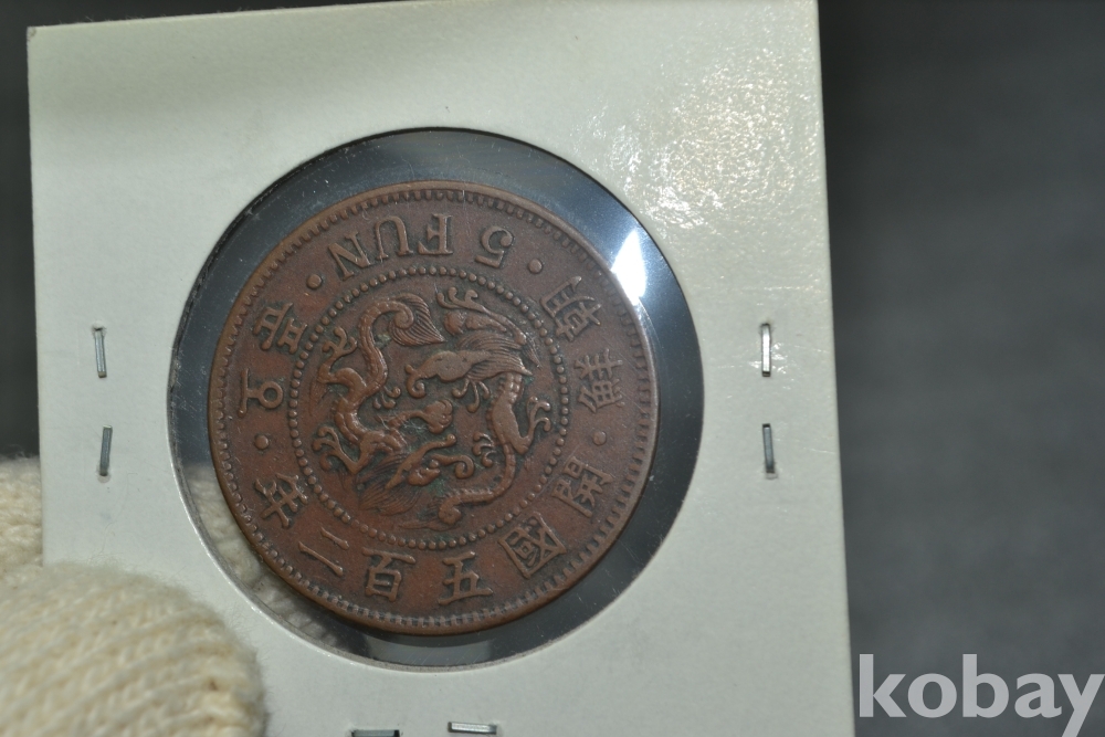 " 매우 귀중한 왕특년도~!! 희소종류 개국502년도 큰글씨체 대자(大字) 오푼~ 매우 귀한종류 ".. " 조선 개국502년(1893년)(대자) 5푼(오푼) 청동화 " .. 이화장 진품~ 조선말 구한국 근대전 / 도안문양 좋은 보존상태