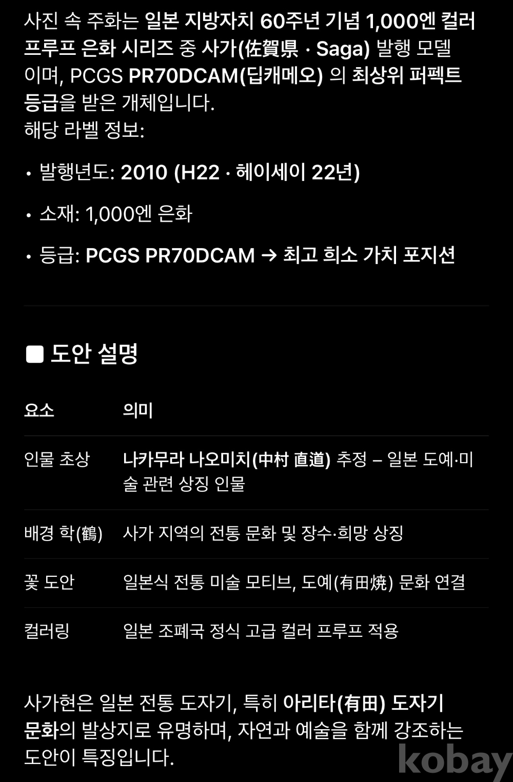 [은화] 2010년 일본 1온스 은화 “사가현“ PCGS 70 프루프 딥카메오
