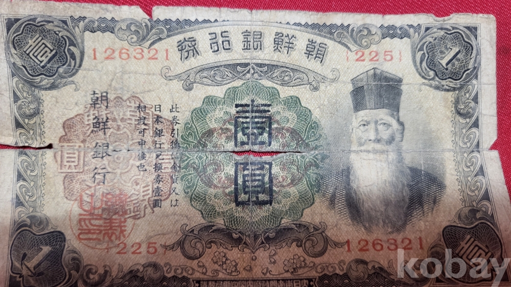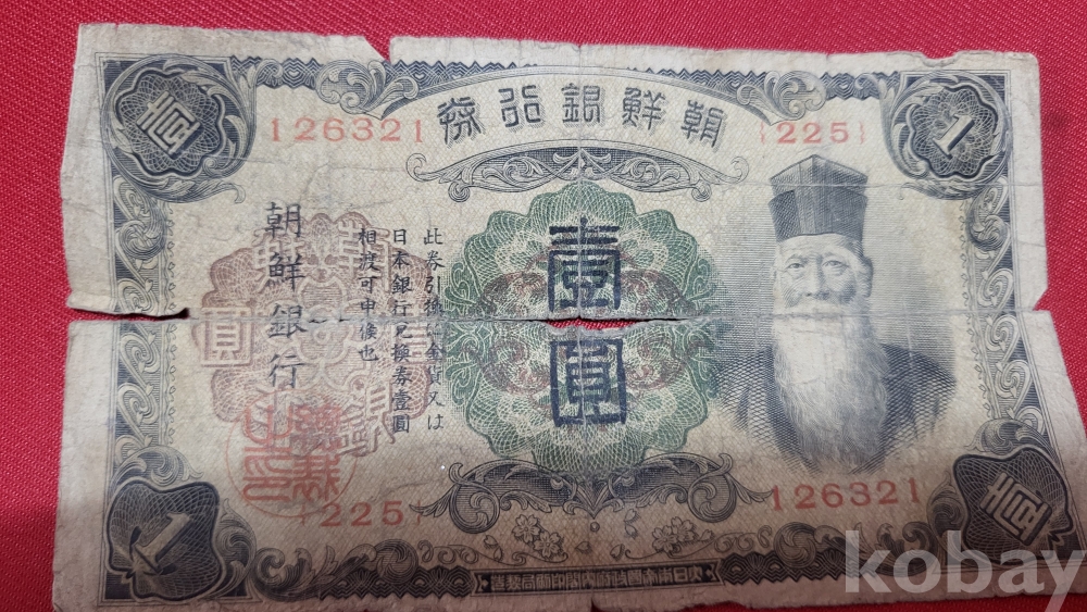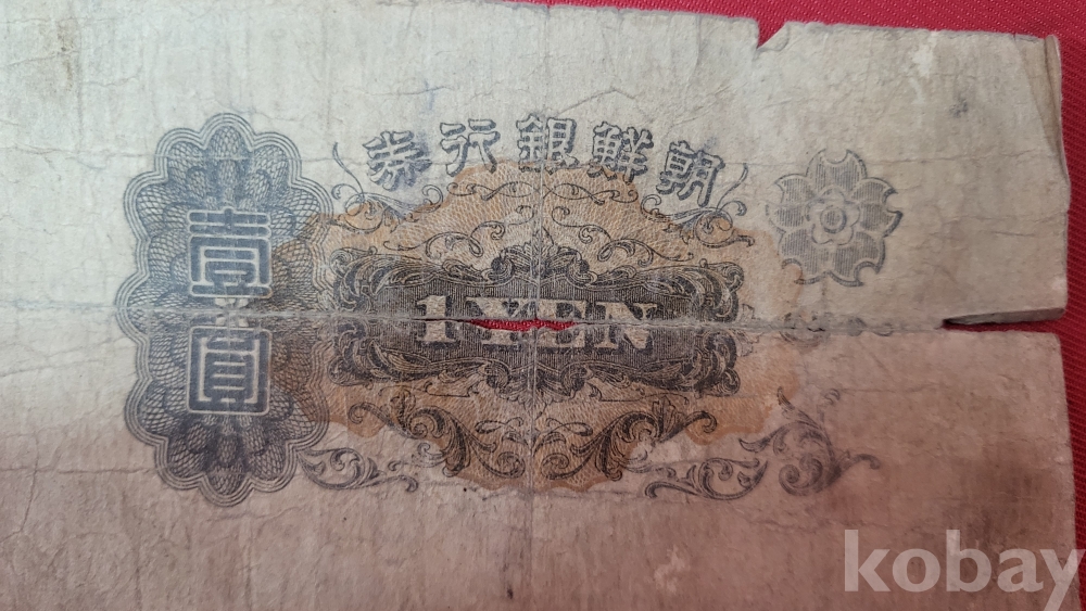 T ㅡ1권 2 호 넷좌번 ////// 일제강점기 때 사용되었던 조선은행의 일원 지폐입니다,