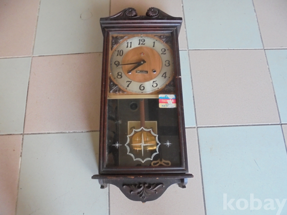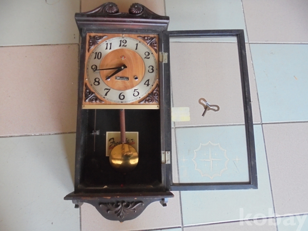 걷을 보아도 위와어래 예술적인무늬만들었고 프론티어 마크와 번개표도있는 추와 태엽키도있는 작동되는 완벽한 고급프론티어 태엽큰시계