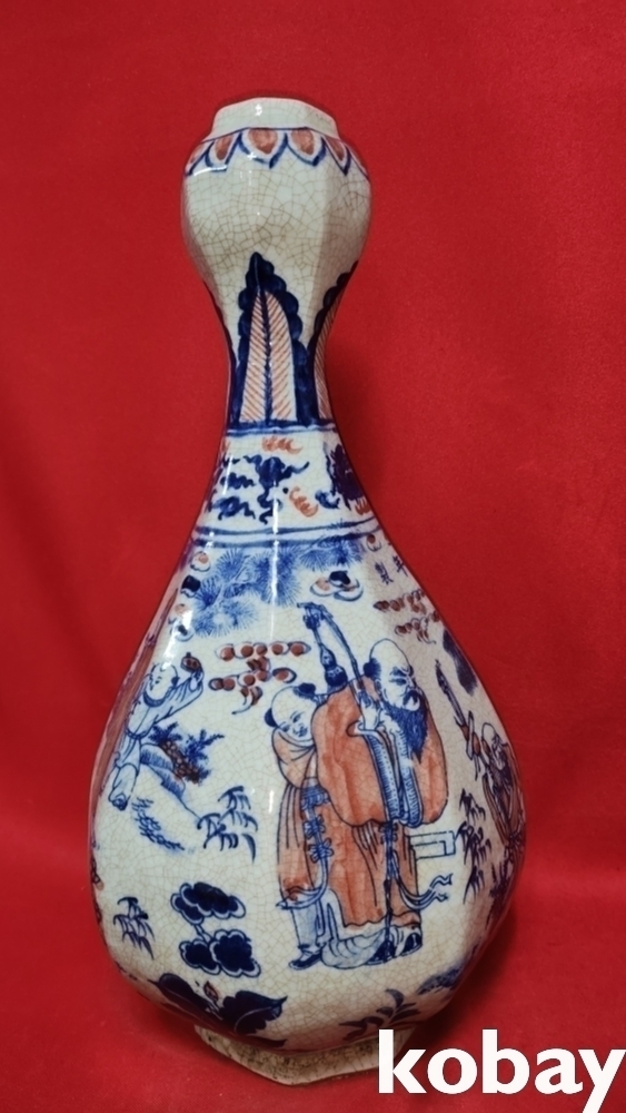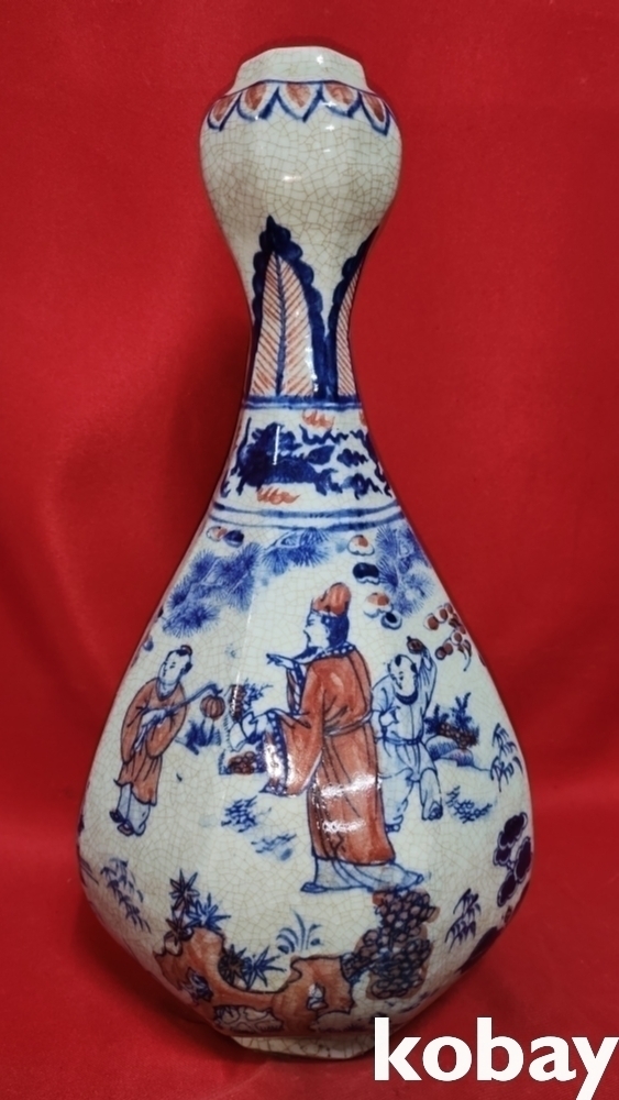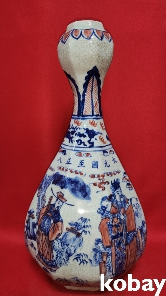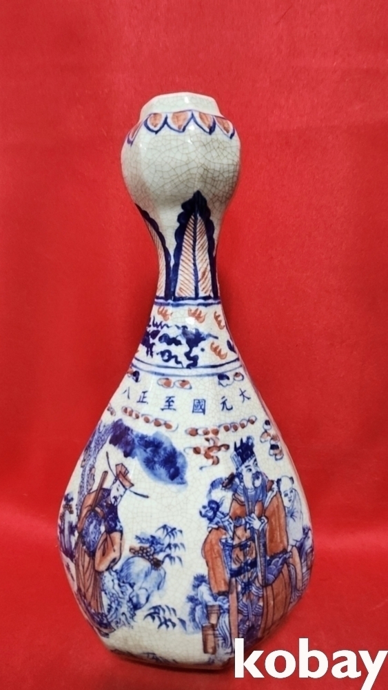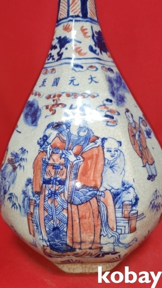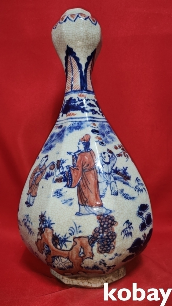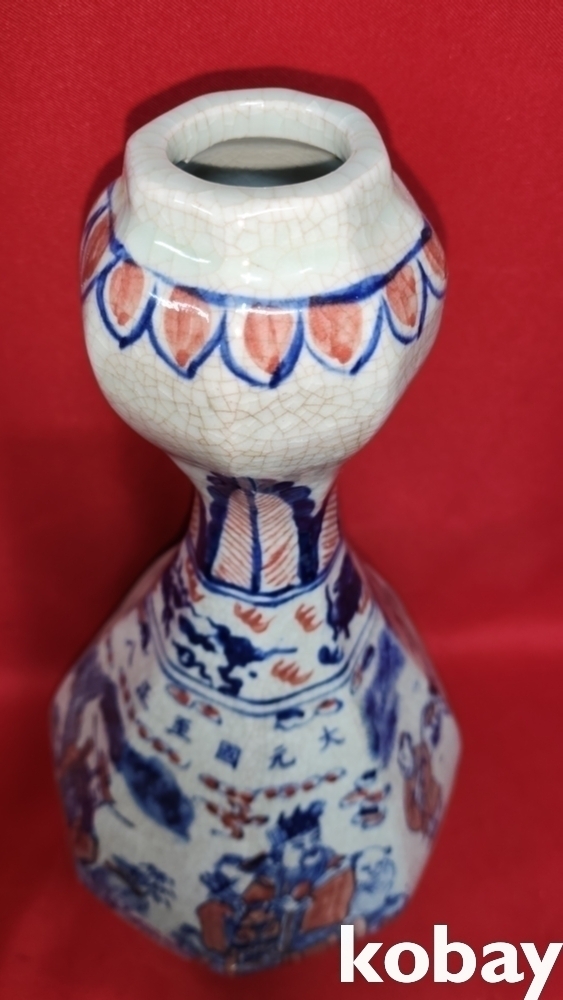 대원국지정8년제 유리홍 9명의 인물이 도안으로 있는 8각 산두병입니다,