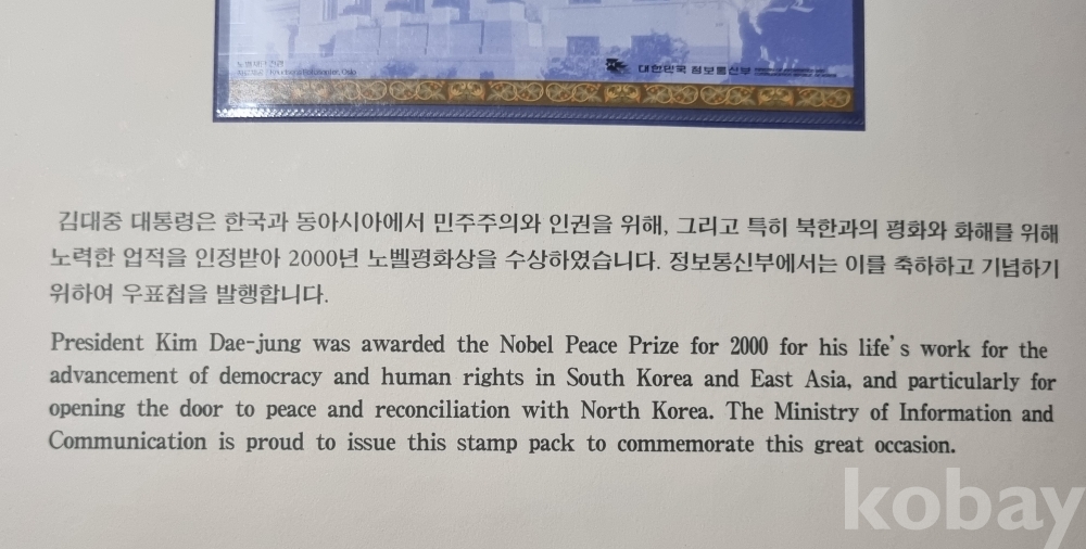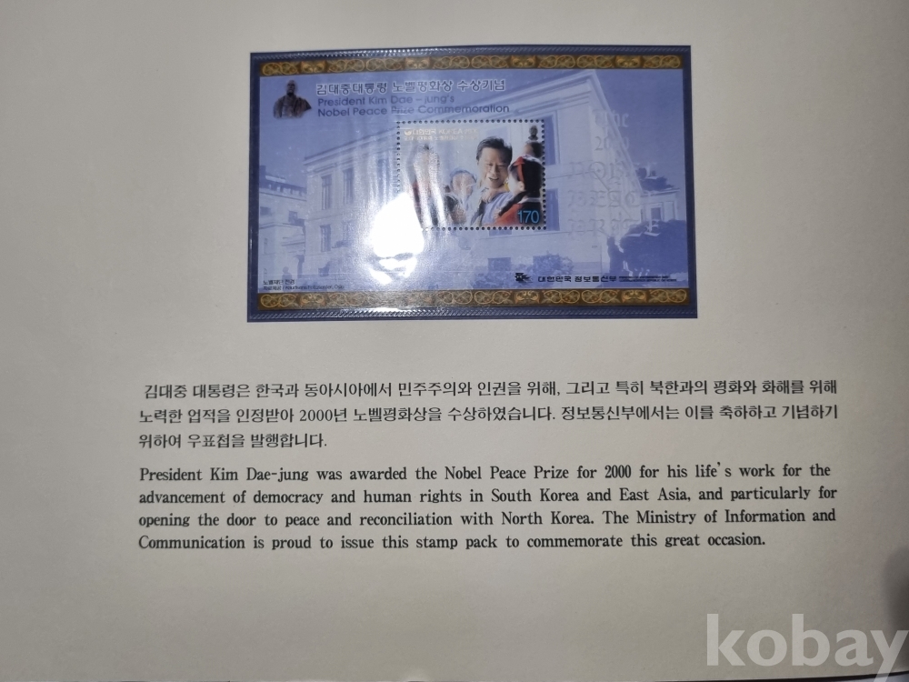 김대중 대통령 노벨평화상 수상 기념 우표입니다
