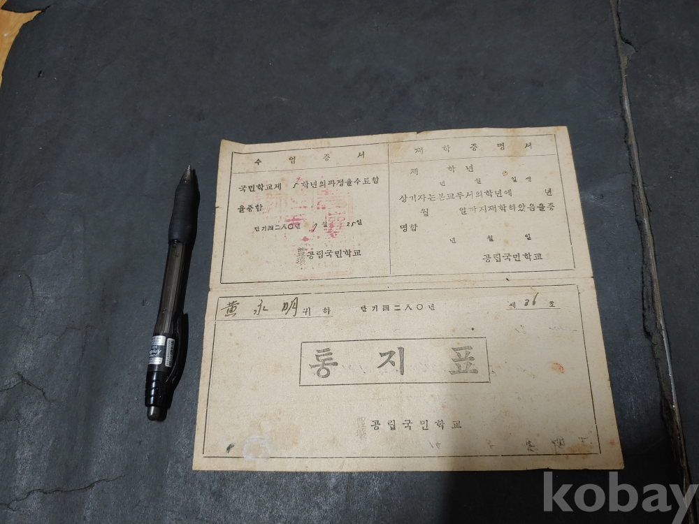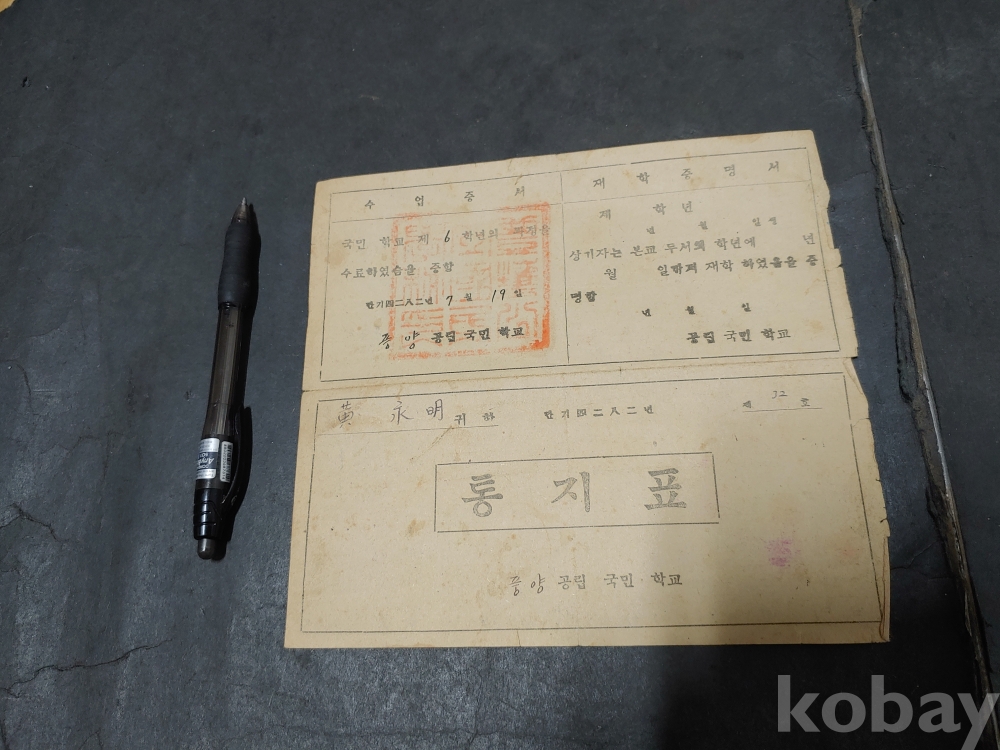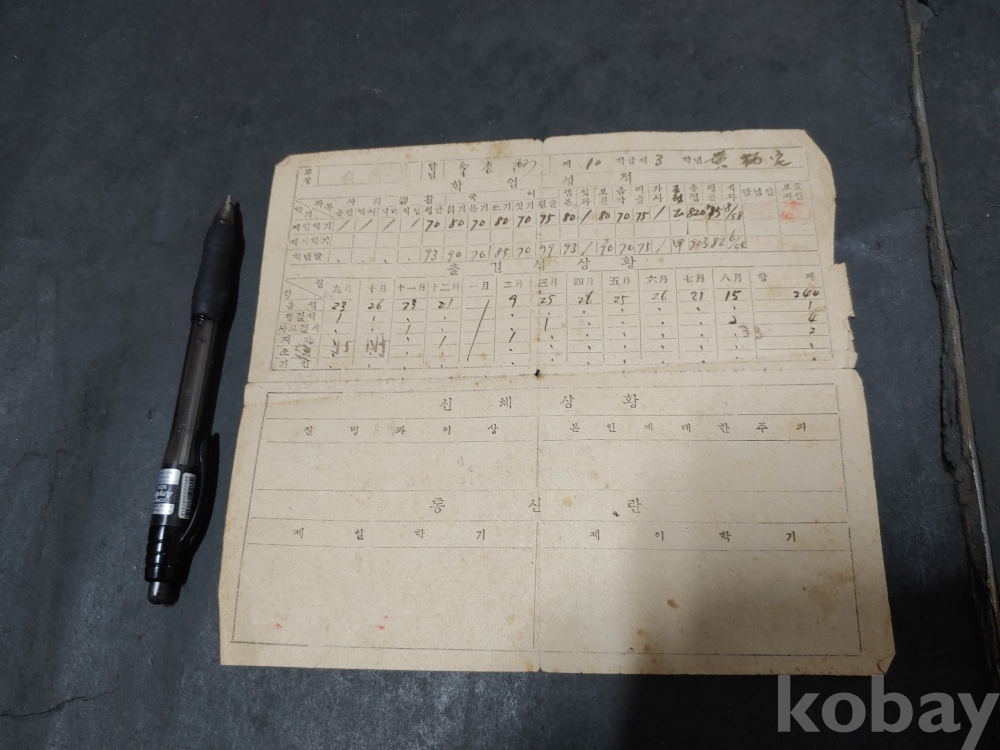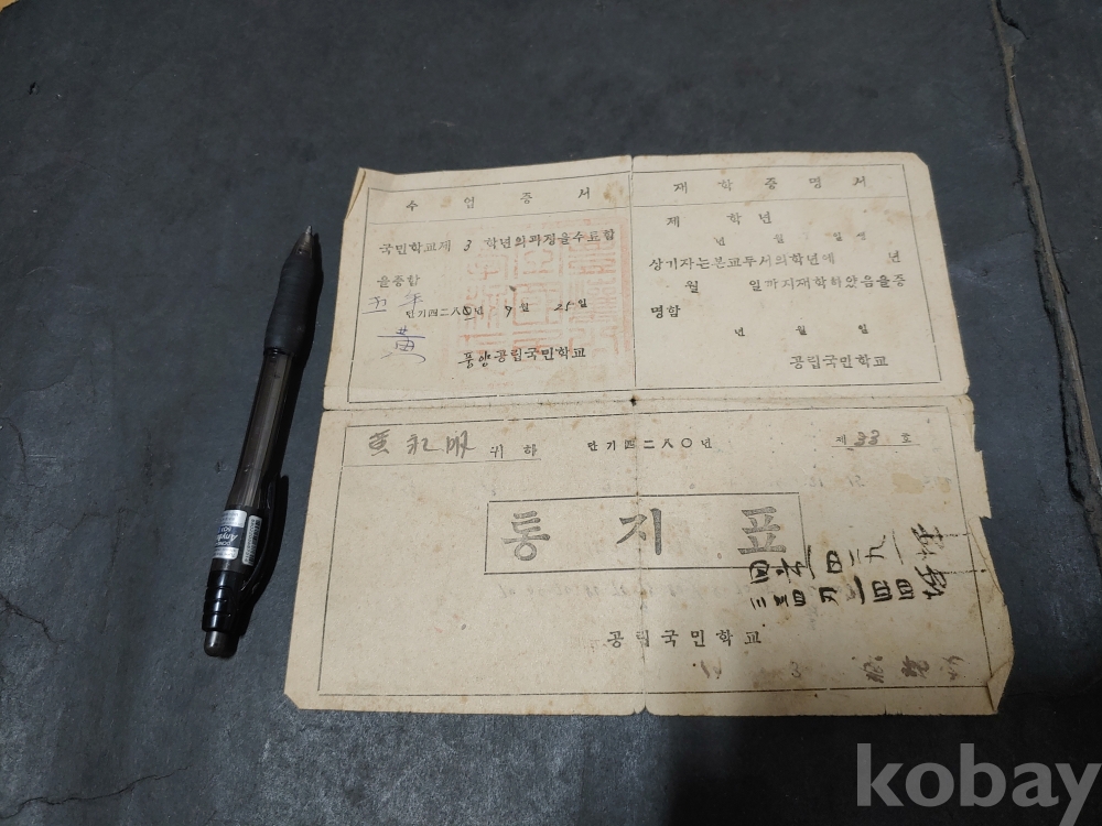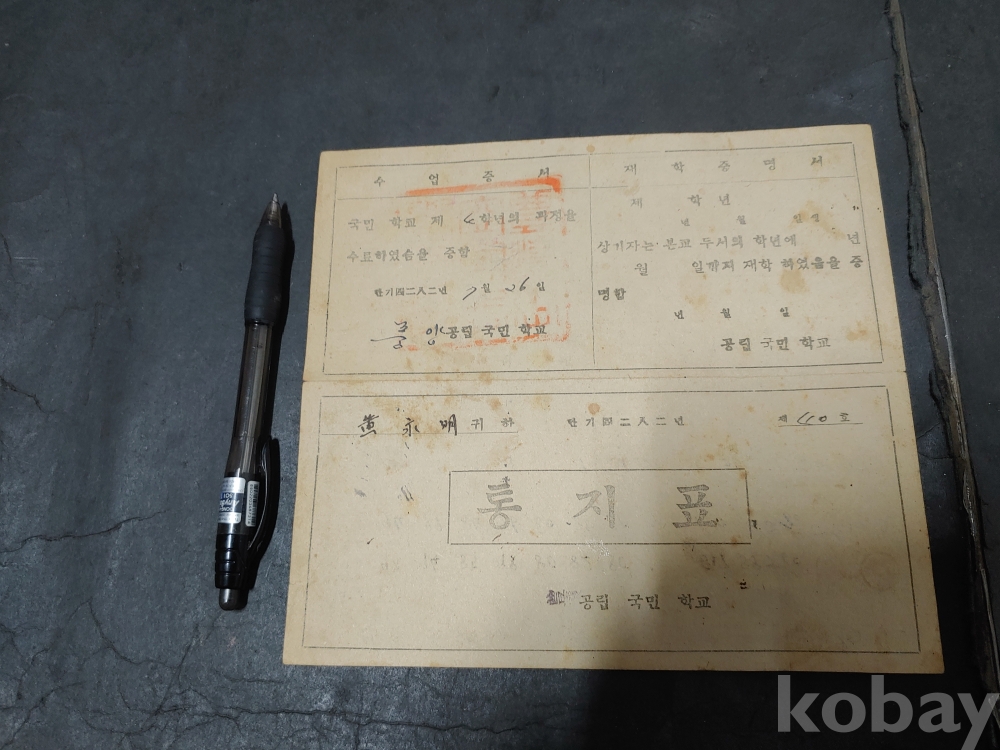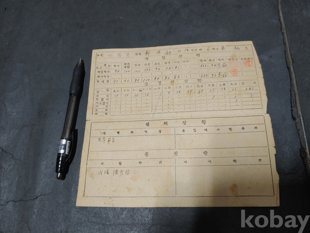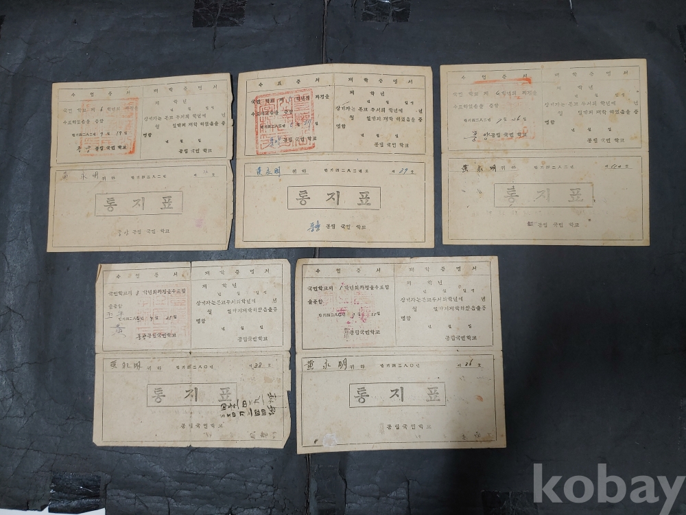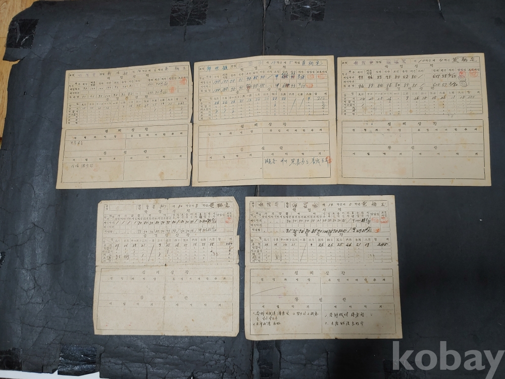 ""안동 풍양 공립 국민학교 통지표 5장""