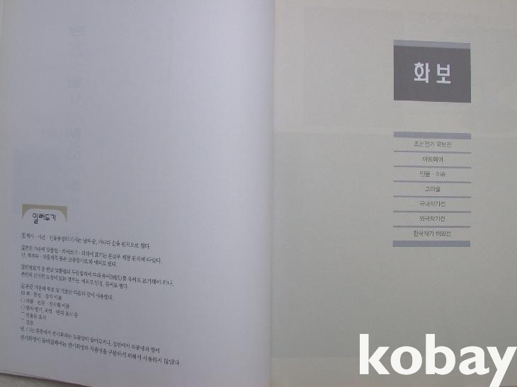 화보, 개관, 행사/사건, 전시, 자료, 미술인 인명록 순으로 수록하였다. 이전 소장자의 흔적이 두 군데 남아 있다.
