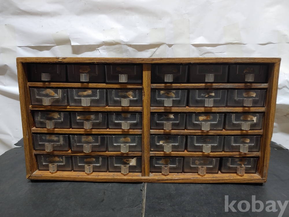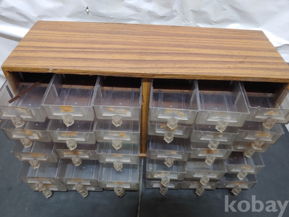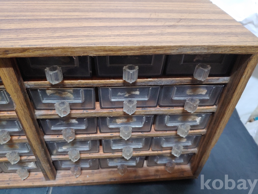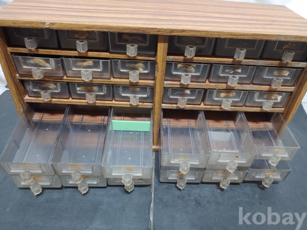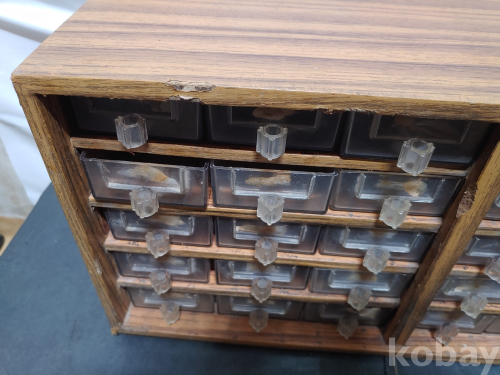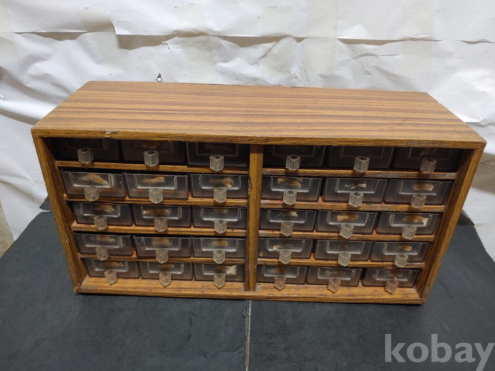 ""소형 작은 나사 .소형 연장 부속품 등을 보관하는 30칸짜리 나무(프라스틱, 합판) 연장통""