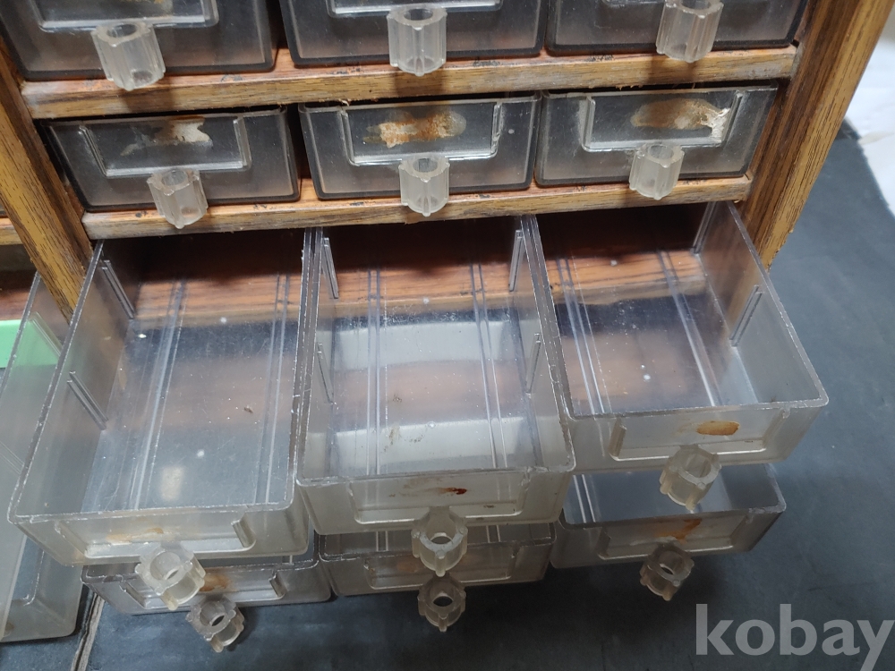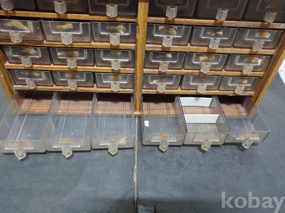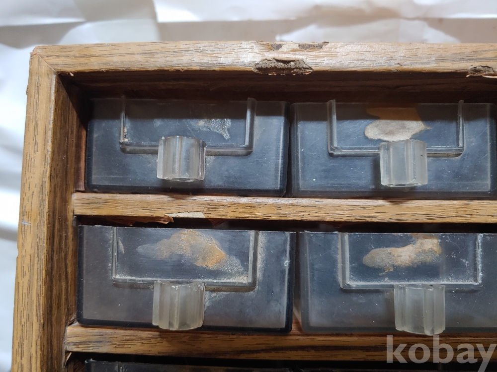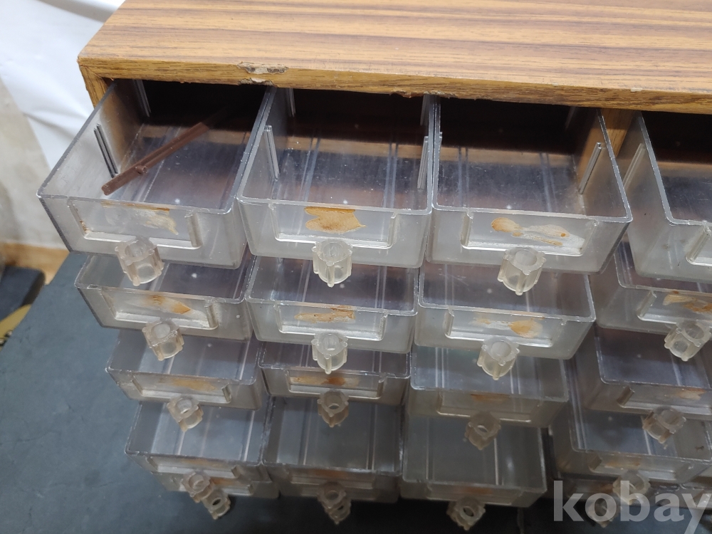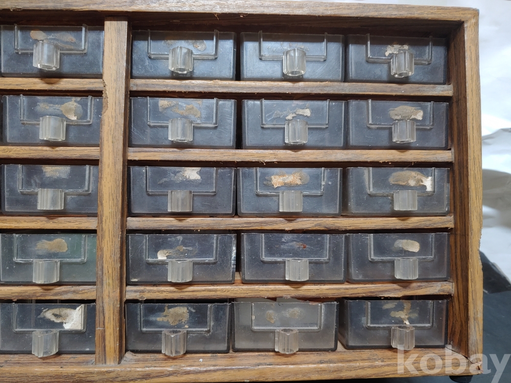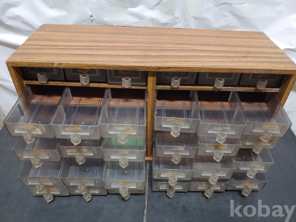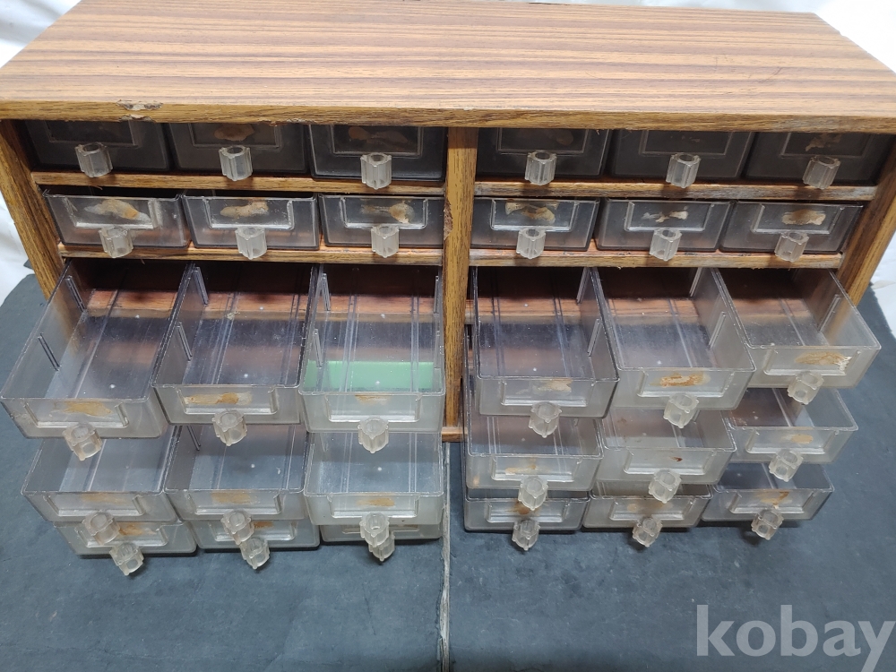 ""소형 작은 나사 .소형 연장 부속품 등을 보관하는 30칸짜리 나무(프라스틱, 합판) 연장통""