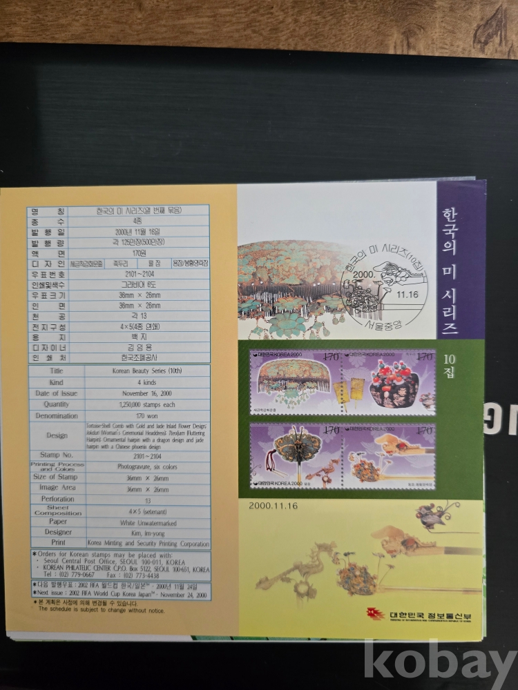 우표안내카드/00'11.16 한국의미시리즈 10집 족두리